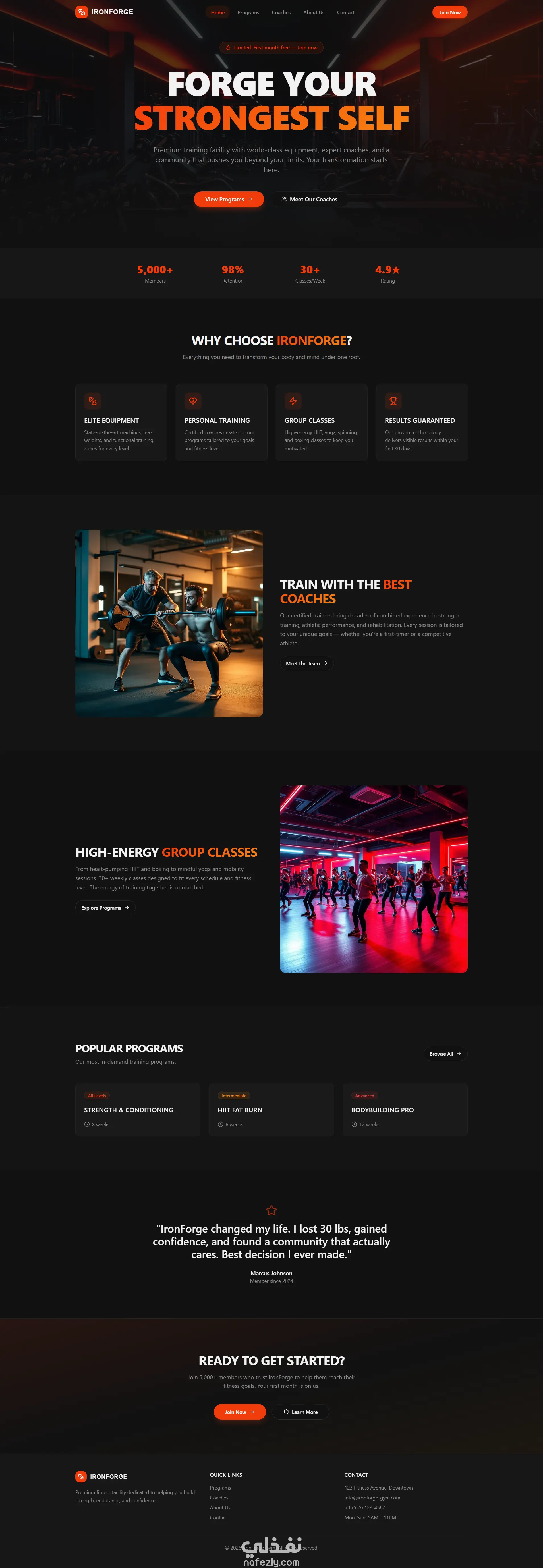 تصميم وإنشاء موقع إلكتروني متكامل للصالات الرياضية يساعد الزوار على التعرف على البرامج التدريبية، المدربين، ونظام الاشتراكات، مع واجهة حديثة وسهلة الاستخدام تعمل على جميع الأجهزة (موبايل – تابلت – كمبيوتر). الموقع يركز على تجربة المستخدم وسرعة الوصول للمعلومات مع تصميم رياضي احترافي يعكس هوية النشاط. ^^الصفحات الأساسية في الموقع^^ => Home -عرض مختصر عن الصالة الرياضية -أبرز البرامج التدريبية -المدربين المميزين -عروض الاشتراك -أزرار تسجيل وانضمام سريع => About Us -نبذة عن الصالة الرياضية -الرؤية والرسالة -أهداف المركز -سنوات الخبرة والإنجازات -صور للمكان والمرافق => Programs -عرض البرامج التدريبية المتاحة مثل: -كمال الأجسام -اللياقة البدنية -التخسيس -الكروس فيت -تمارين السيدات تفاصيل كل برنامج: -المدة -المستوى -الفئة المستهدفة -السعر أو نظام الاشتراك => Trainers -صفحة خاصة بالمدربين -صورة لكل مدرب -نبذة عن الخبرة والشهادات -التخصصات -جدول المواعيد (اختياري) -إمكانية حجز جلسة => Contact Us -نموذج تواصل مباشر (الاسم – البريد – الرسالة) -رقم الهاتف -واتساب -البريد الإلكتروني -العنوان على الخريطة -مواعيد العمل