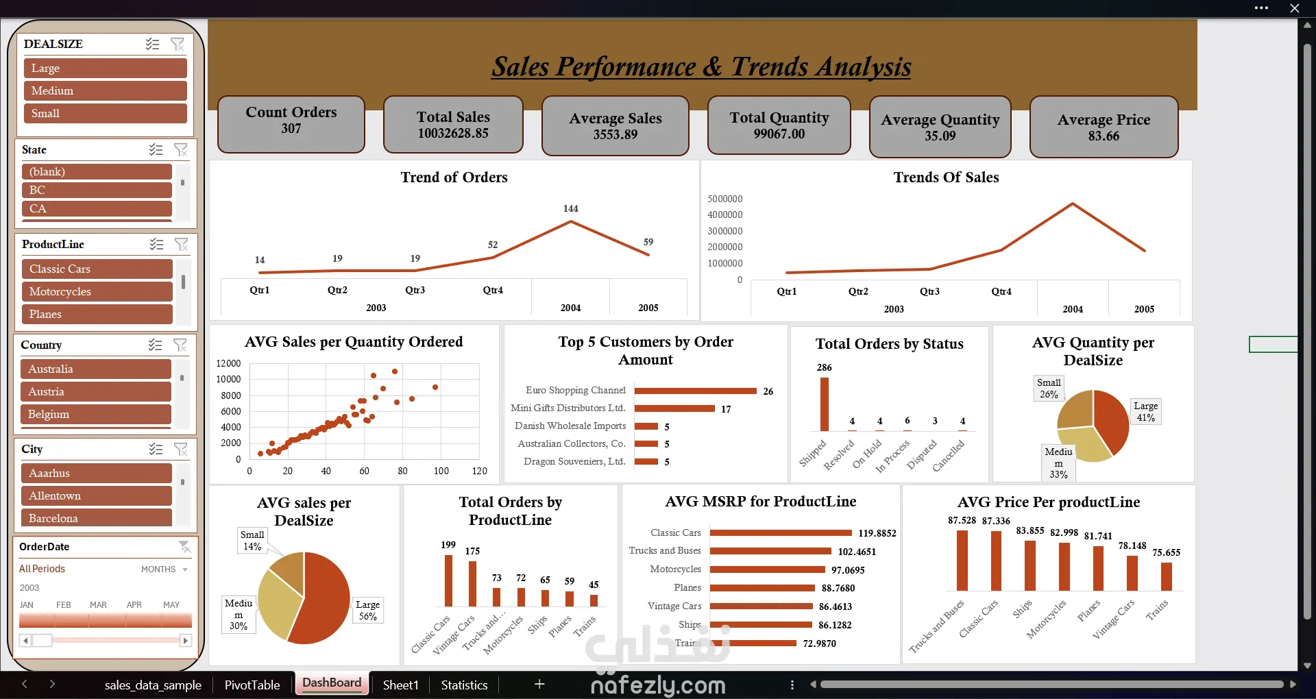 تم تطوير لوحة تحكم شاملة للمبيعات باستخدام Excel من خلال تنظيف البيانات، وتحليلها باستخدام التقنيات الإحصائية، وتصويرها بصريًا. تم إنشاء مخططات تفاعلية، ومؤشرات أداء رئيسية، وقياسات أداء لمتابعة اتجاهات المبيعات، وأداء المنتجات، وسلوك العملاء، مما يتيح تقديم توصيات قابلة للتنفيذ ودعم اتخاذ القرارات المبنية على البيانات.