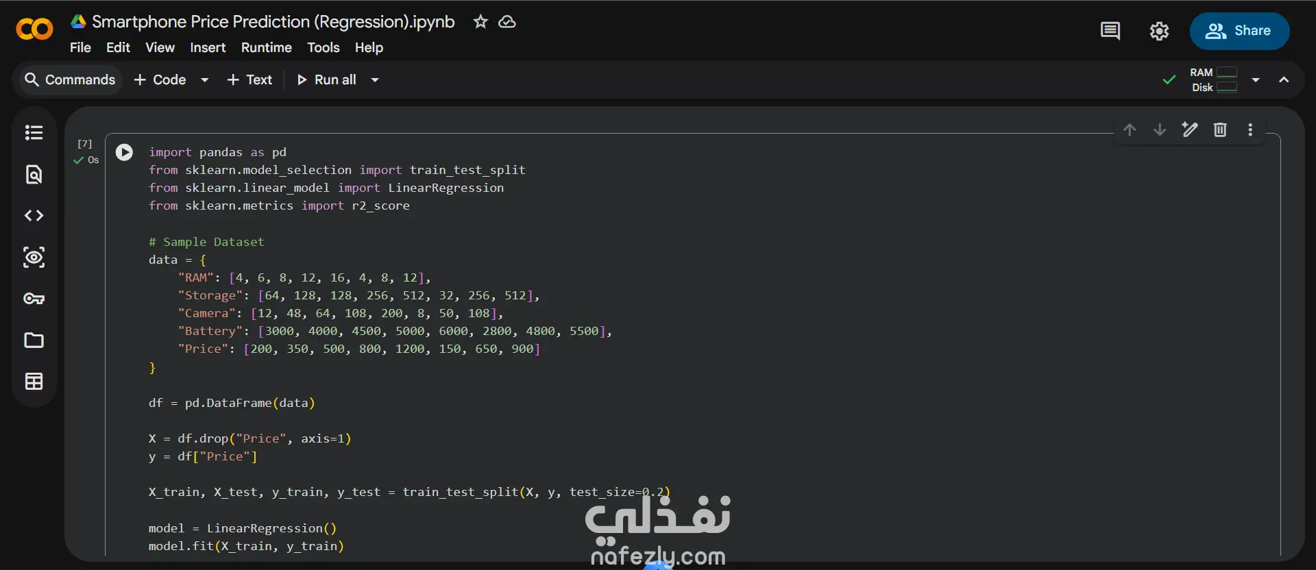 في هذا المشروع قمت ببناء نموذج تعلم آلي من نوع Regression للتنبؤ بسعر الهاتف الذكي بناءً على مواصفاته التقنية مثل: