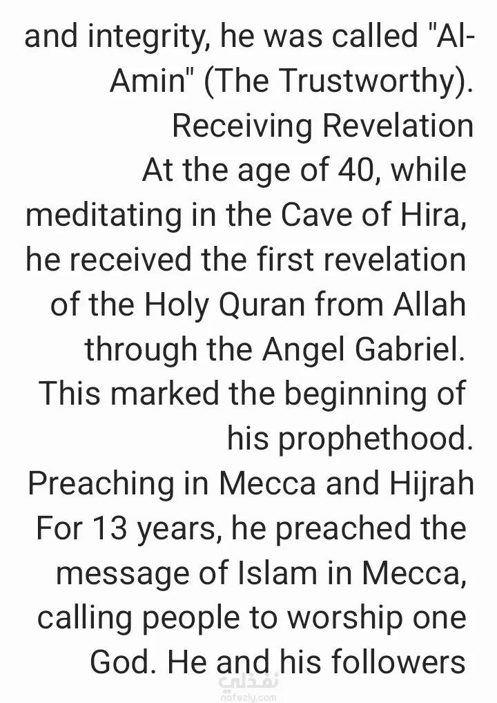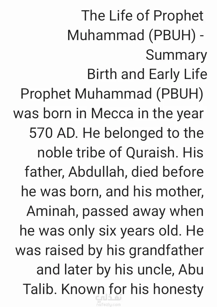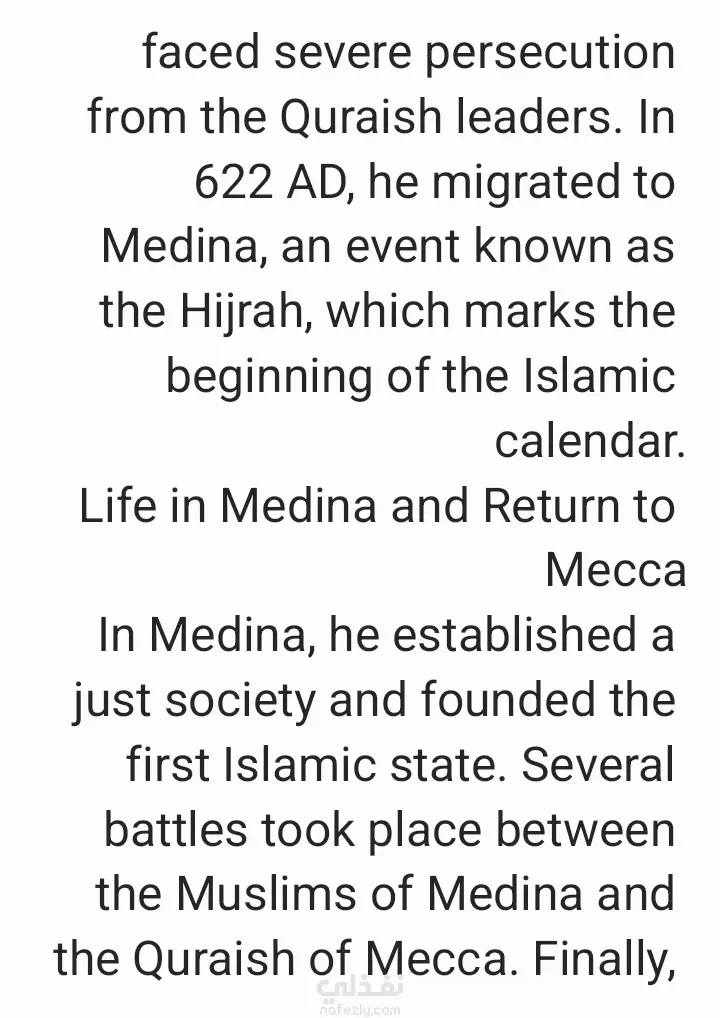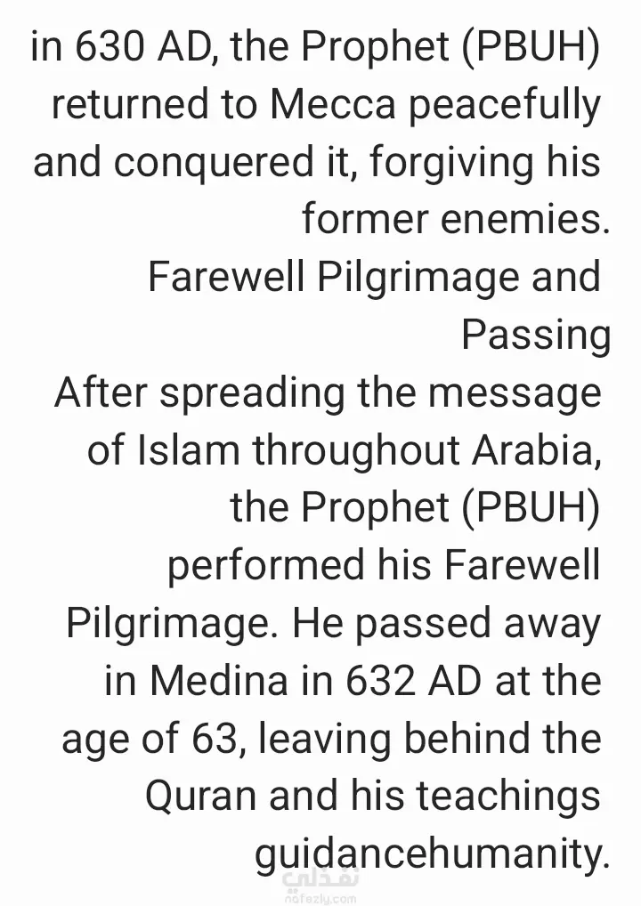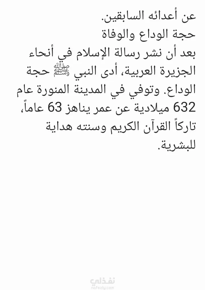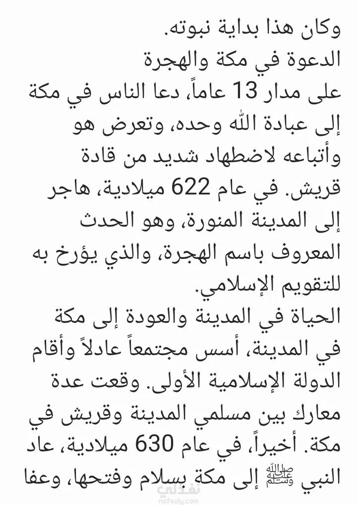 هذا نموذج صممته ويتحدث عن حياه النبي محمد