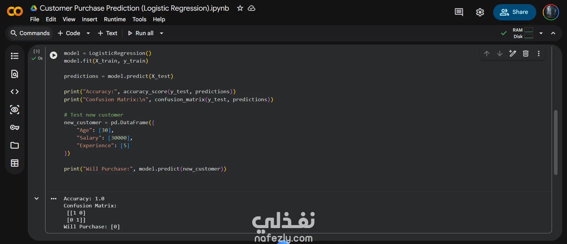 في هذا المشروع قمت ببناء نموذج تصنيف للتنبؤ بما إذا كان العميل سيقوم بعملية شراء أم لا، بناءً على بعض الخصائص مثل: