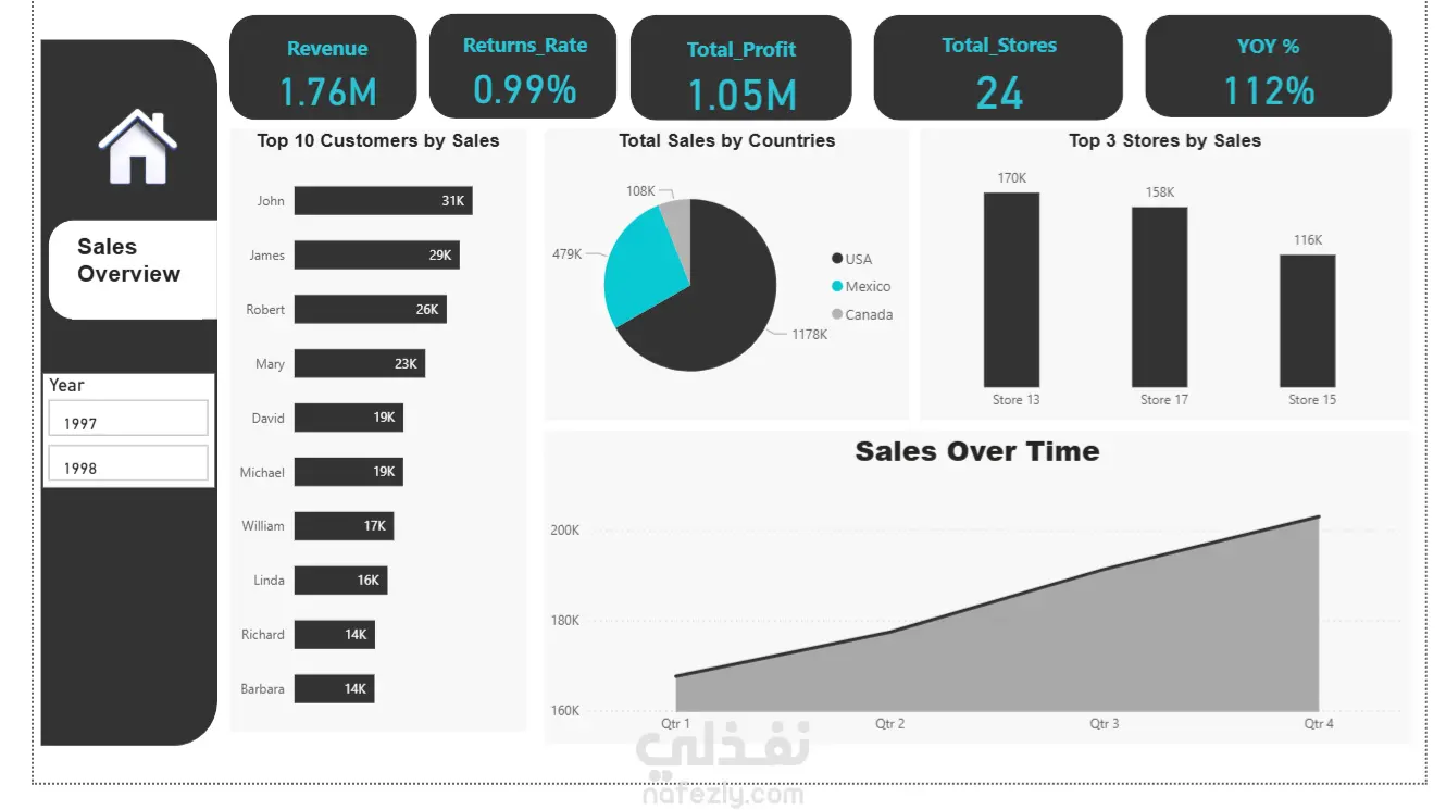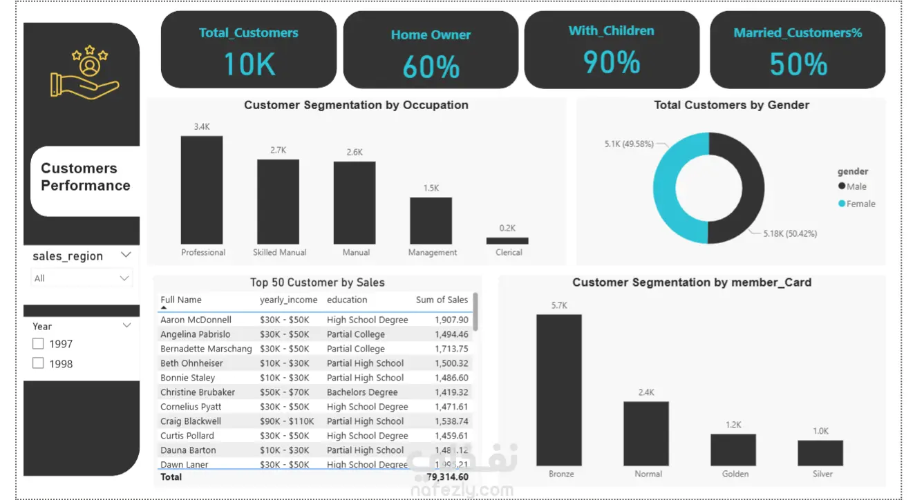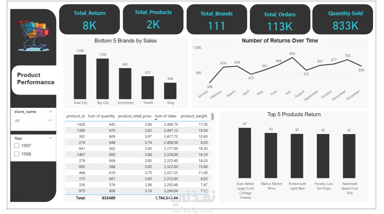 النتيجة: لوحة معلومات تفاعلية توضح أداء الأقسام والمنتجات بشكل بصري وسهل التحليل.