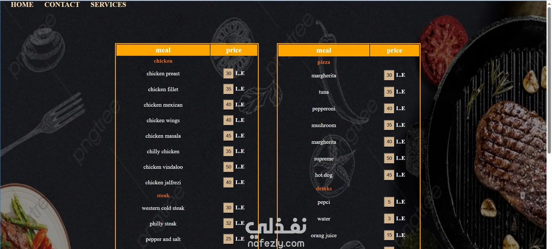 ويبسايت لمطعم