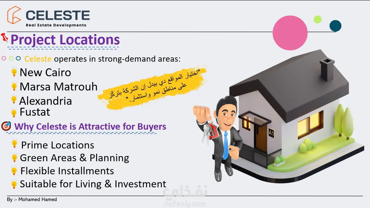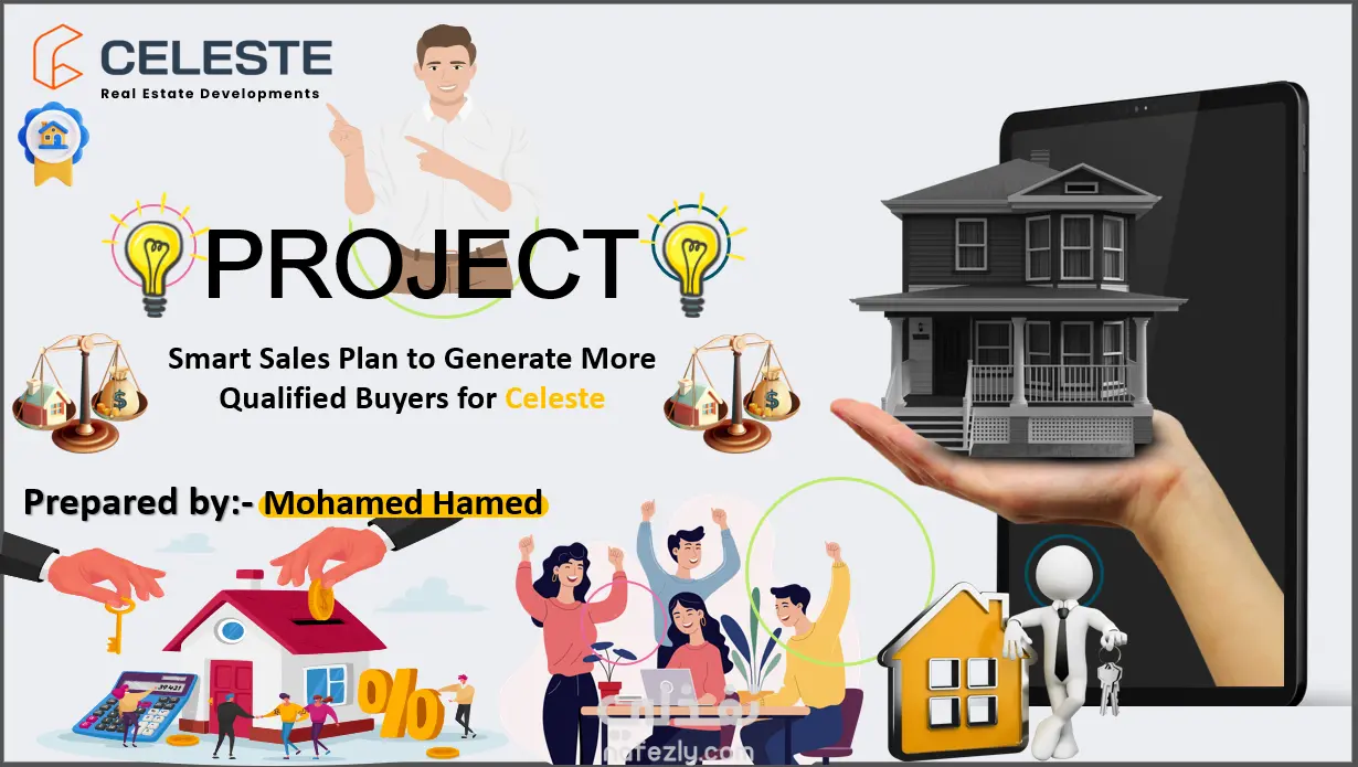 عرض تقديمي لخطة مبيعات عقارية احترافية (Celeste).