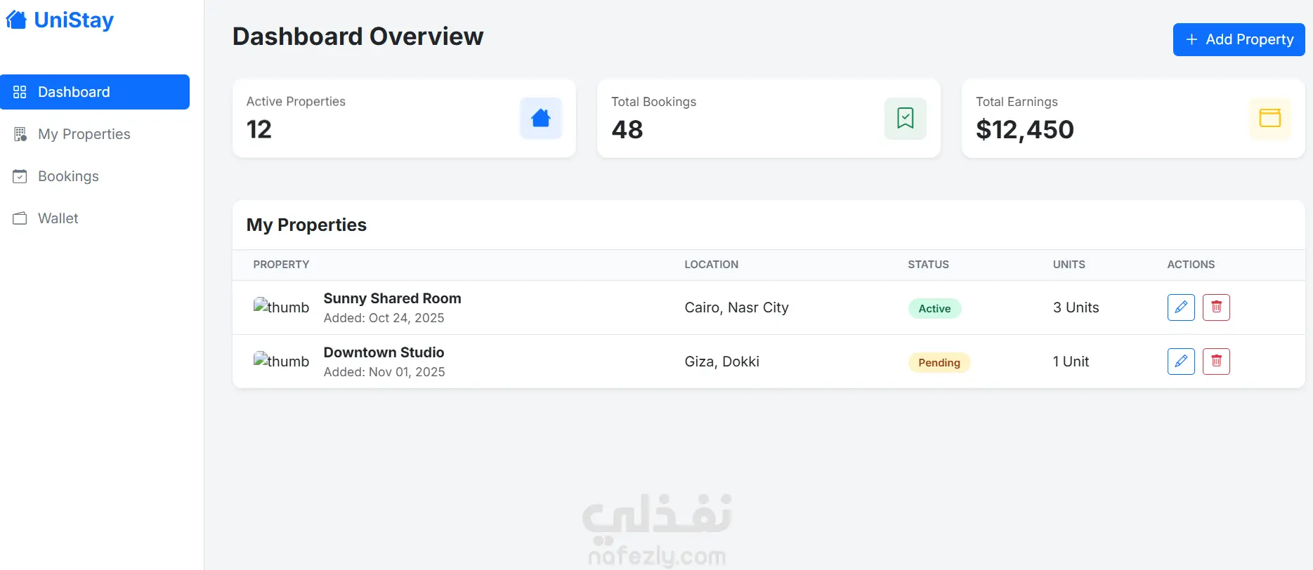 لوحة تحكم (Dashboard): لإدارة العقارات، الطلبات، والمدفوعات بسهولة.