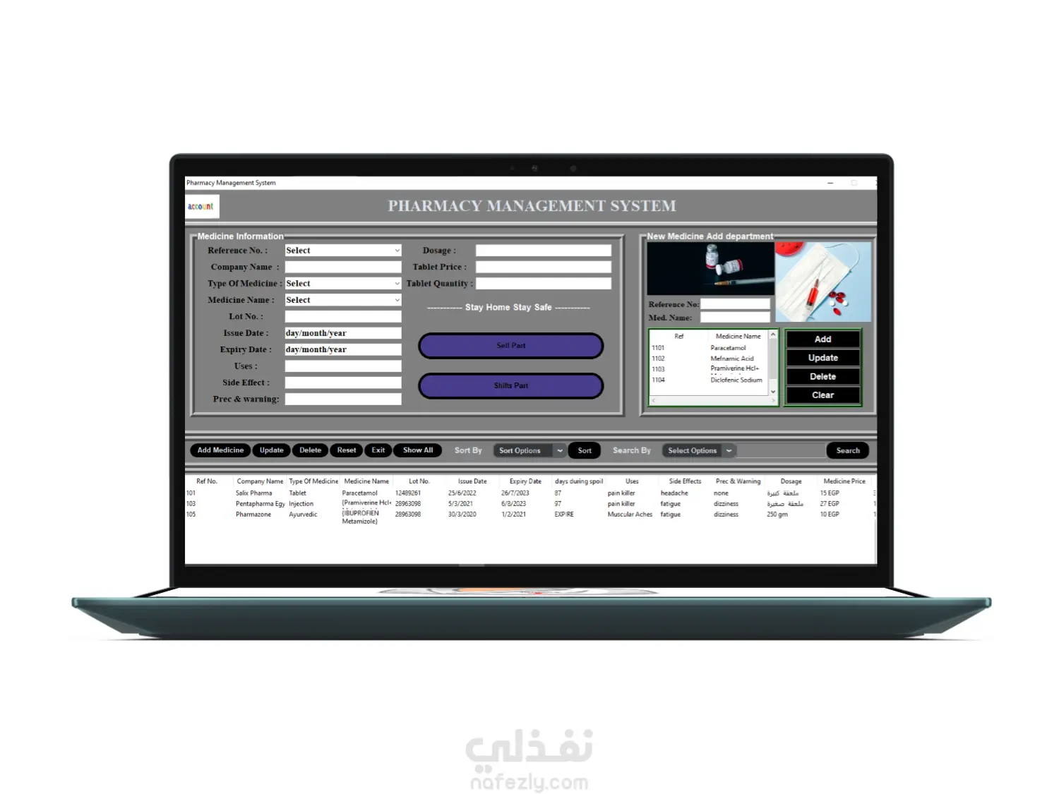 إضافة الأدوية الجديدة بسهولة مع جميع التفاصيل (الاسم، الكمية، السعر، تاريخ الصلاحية)