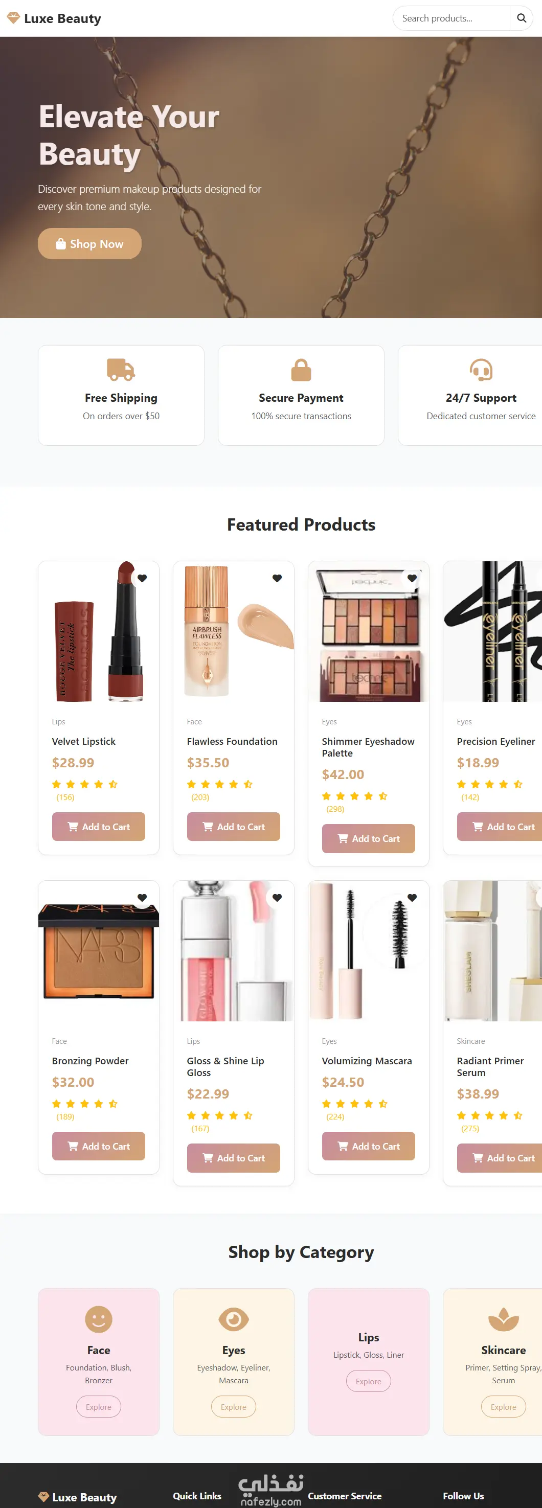 مشروع e-commerce لعرض المنتجات الخاصه بالتجميل حيث تم استخدام لغات الويب مثل : 1-HTML 2-CSS 3-JavaScript 4-Bootstrap