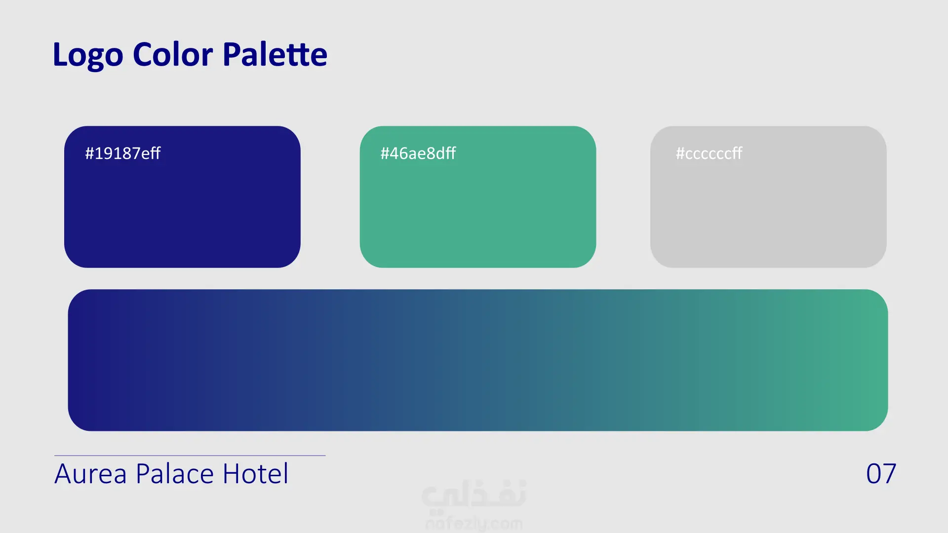 الألوان هي تمثيل للفخامة و الهدوء باللونين الأزرق الدال على المصداقية و الأمان و الأخضر الهادئ