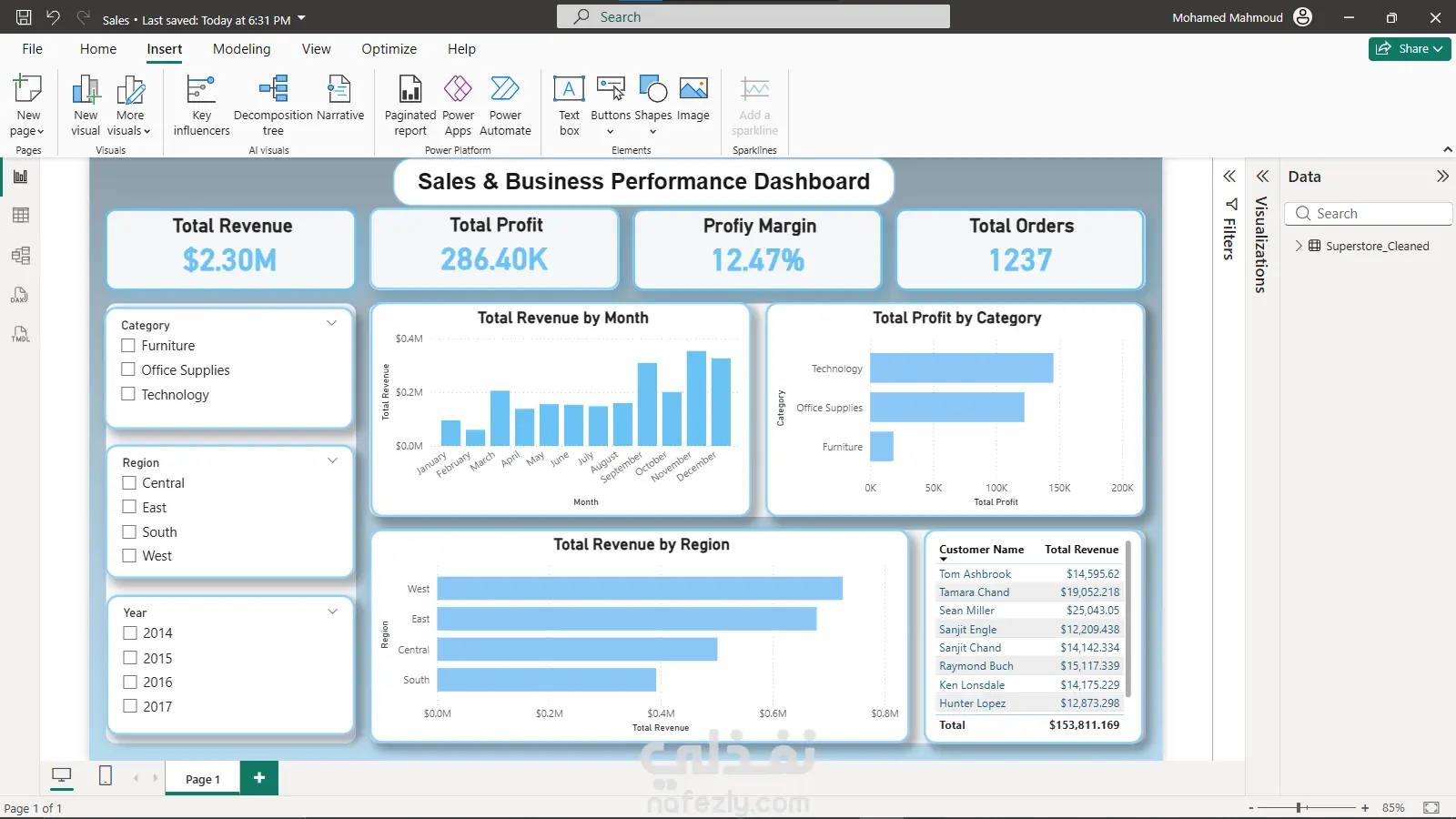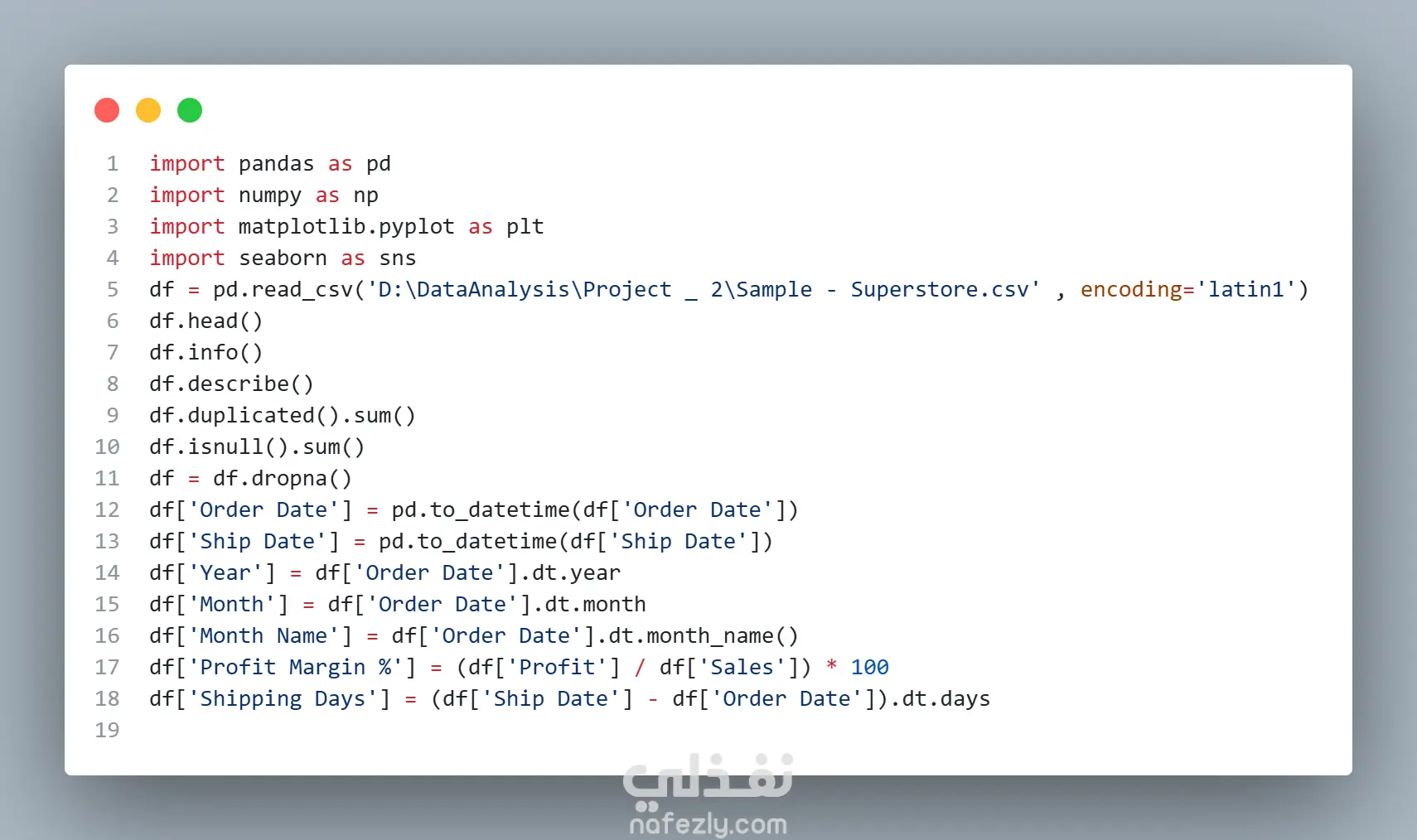 طوّرتُ لوحة معلومات شاملة لأداء المبيعات والأعمال لتحليل الإيرادات والربحية وسلوك العملاء. ? نظّفتُ بيانات المبيعات الأولية وعالجتها مسبقًا باستخدام لغة بايثون (مكتبة Pandas). ? أجريتُ تحليلًا استكشافيًا للبيانات (EDA) لتحديد الاتجاهات والأنماط. ? جهّزتُ مجموعات بيانات منظمة لعرضها بصريًا. ? أنشأتُ مقاييس DAX متقدمة (الإيرادات، الربح، هامش الربح، متوسط قيمة الطلب، العملاء الفريدون). ? صممتُ لوحة معلومات تفاعلية باستخدام Power BI لدعم اتخاذ القرارات التجارية. يُظهر هذا المشروع قدرتي على تحويل البيانات الأولية إلى رؤى قابلة للتنفيذ باستخدام كلٍ من بايثون وPower BI.