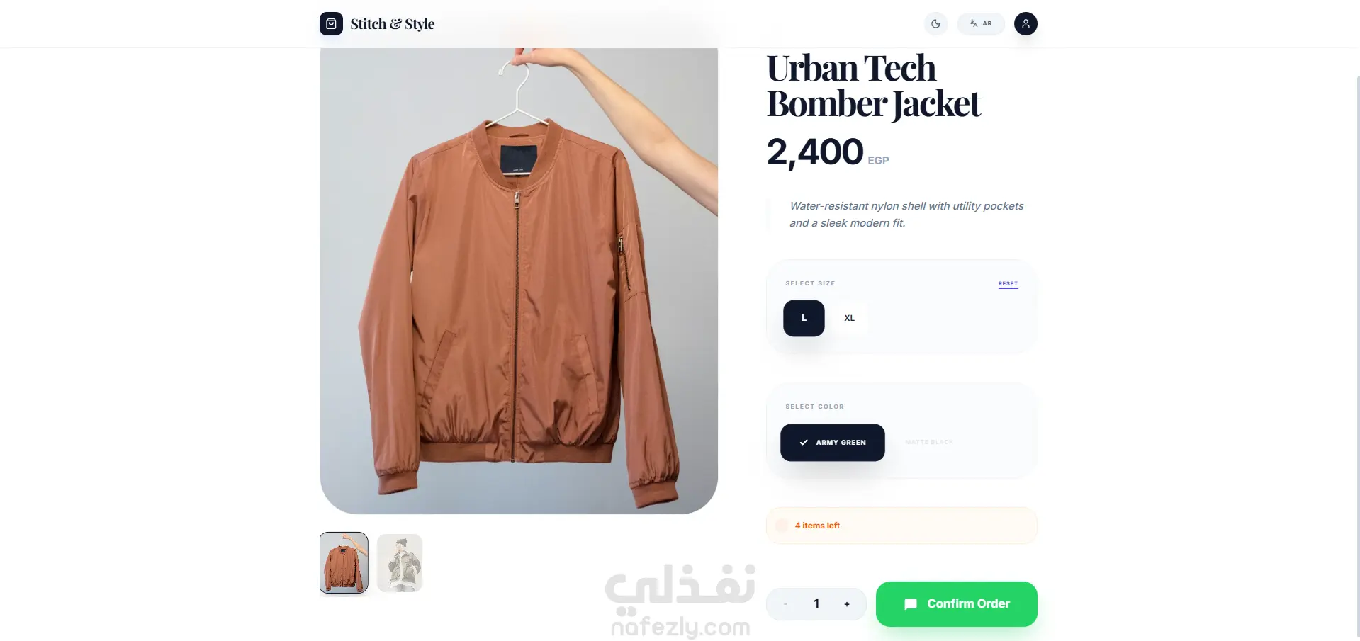 اسم المنتج (مثل: Urban Tech Bomber Jacket)