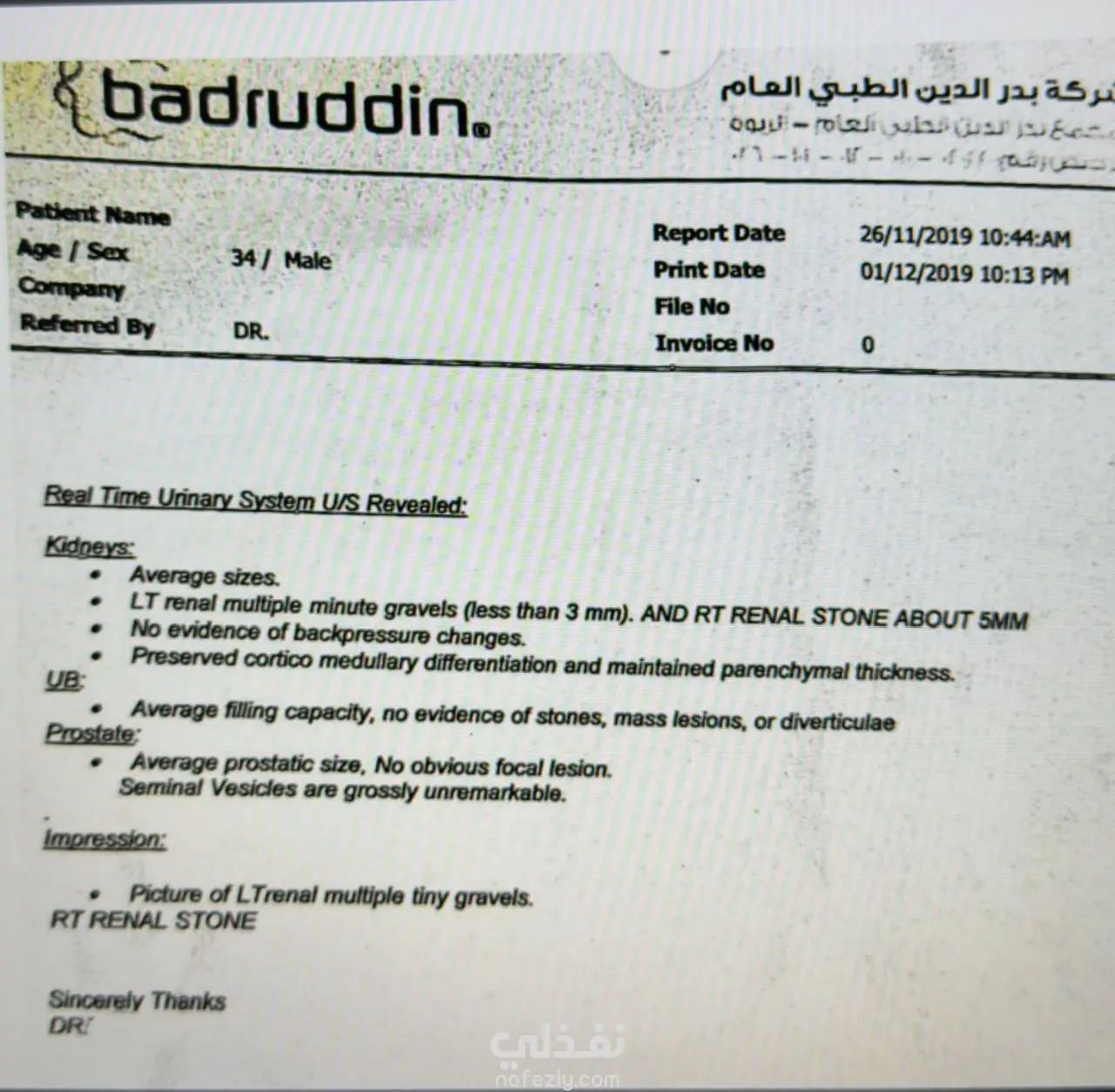 ترجمة تقرير طبي فحص الموجات الصوتية على الجهاز البولي