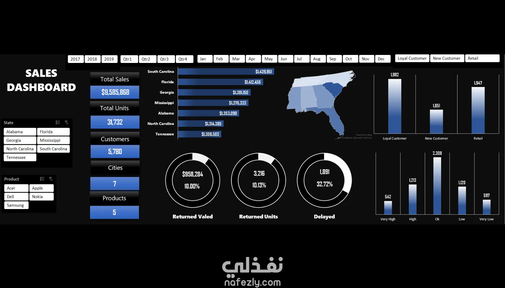 قمت بتصميم Dashboard تفاعلي باستخدام Excel لتحليل بيانات المبيعات لشركة تعمل في عدة مدن. الهدف من المشروع كان تحويل البيانات الخام إلى رؤى واضحة تساعد الإدارة على فهم الأداء واتخاذ قرارات مبنية على البيانات. يشمل التحليل: إجمالي المبيعات وعدد الوحدات والعملاء مقارنة الأداء بين المدن تحليل أنواع العملاء ومستوى رضاهم قياس نسبة المرتجعات وتأثيرها على الأرباح تحليل تأخير الطلبات وعلاقته برضا العملاء تحديد المنتجات الأعلى في نسبة المرتجعات تم استخدام: Pivot Tables Pivot Charts Slicers معادلات Excel لتنظيم وتحليل البيانات النتيجة كانت Dashboard واضح وسهل الاستخدام يتيح تصفية البيانات وعرض المؤشرات بشكل فوري لدعم اتخاذ القرار.