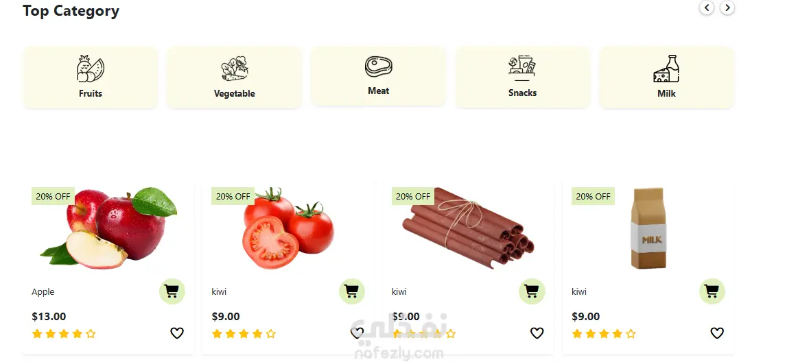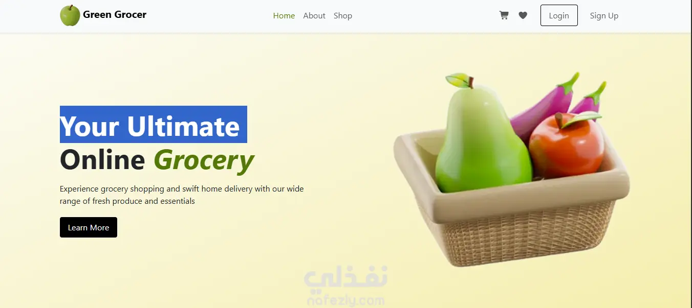 متجر Green Grocer لبيع المنتجات الغذائية، والهدف الأساسي منه مكنش بس إني أعمل شكل حلو، لكن إني أبني منصة "بياعة" وسهلة جداً في الاستخدام. صممت الواجهة بألوان مريحة زي الأخضر والأبيض عشان تليق مع طبيعة المنتجات الطازجة، واهتميت جداً بتوزيع الأقسام زي (الفواكه، اللحوم، الألبان) في الـ Top Category عشان العميل يوصل للي هو عاوزه في ثواني ومن غير تعقيد.