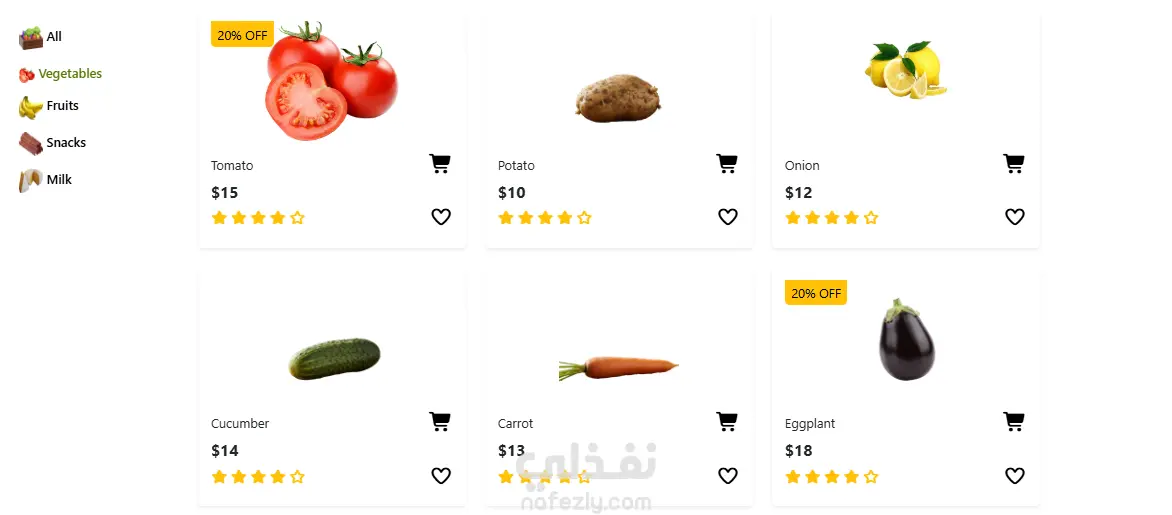 المتجر متبرمج بكود نضيف ومنظم جداً عشان يكون صديق لمحركات البحث (SEO)، وده بيساعد الموقع إنه يظهر في النتائج الأولى ويجذب زوار أكتر. كمان ركزت إن التصميم يكون "مرن" بنسبة 100%، يعني لو العميل فتح المتجر من موبايل، تابلت، أو لابتوب، هيلاقي كل العناصر والخطوط واضحة وفي مكانها المظبوط تماماً. ضفت كمان لمسات احترافية في عرض المنتجات، زي بطاقات الخصومات الذكية (20% OFF) ونظام التقييم بالنجوم، وكل ده عشان أضمن تجربة تسوق ممتعة تخلي العميل يرجع يشتري تاني.