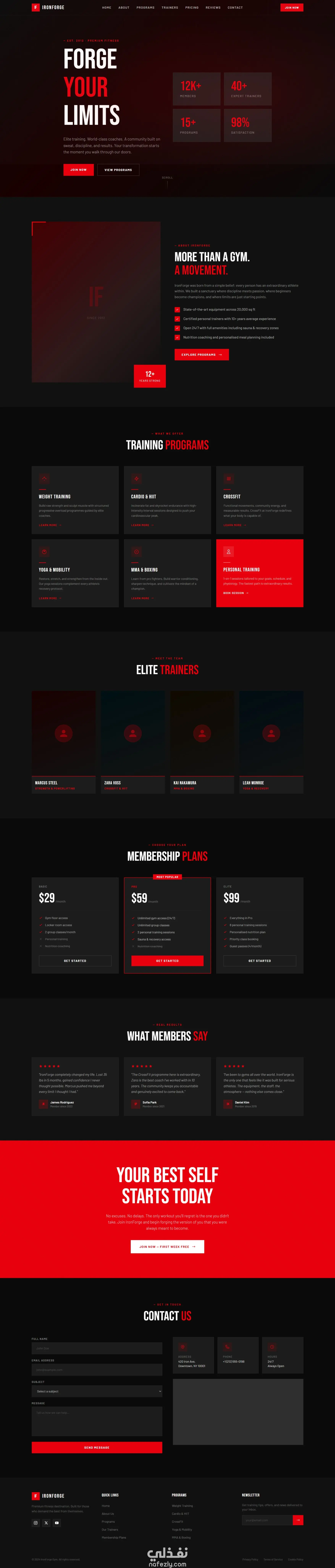 IronForge Gym Landing Page – موقع لياقة بدنية عصري واحترافي
