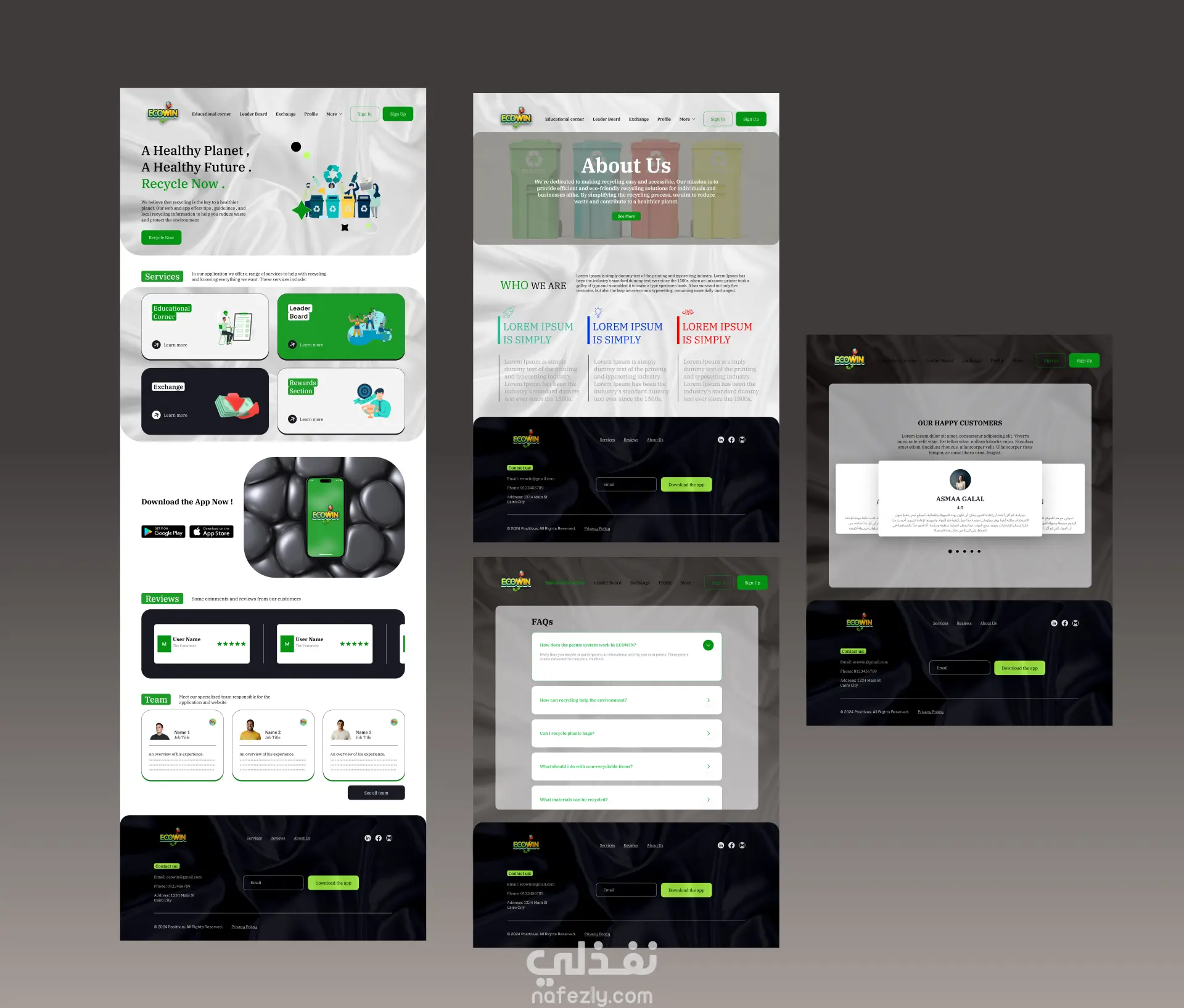تم تطوير الموقع بتصميم متجاوب (Responsive Design) ليعمل بكفاءة على جميع الأجهزة، مما يضمن وصول المستخدمين إلى المعلومات بسهولة في أي وقت ومن أي مكان. الهدف من التصميم هو تعزيز الوعي البيئي، وبناء الثقة مع العملاء، وتسهيل التواصل مع الشركة، بالإضافة إلى دعم التحول نحو مستقبل أكثر استدامة.