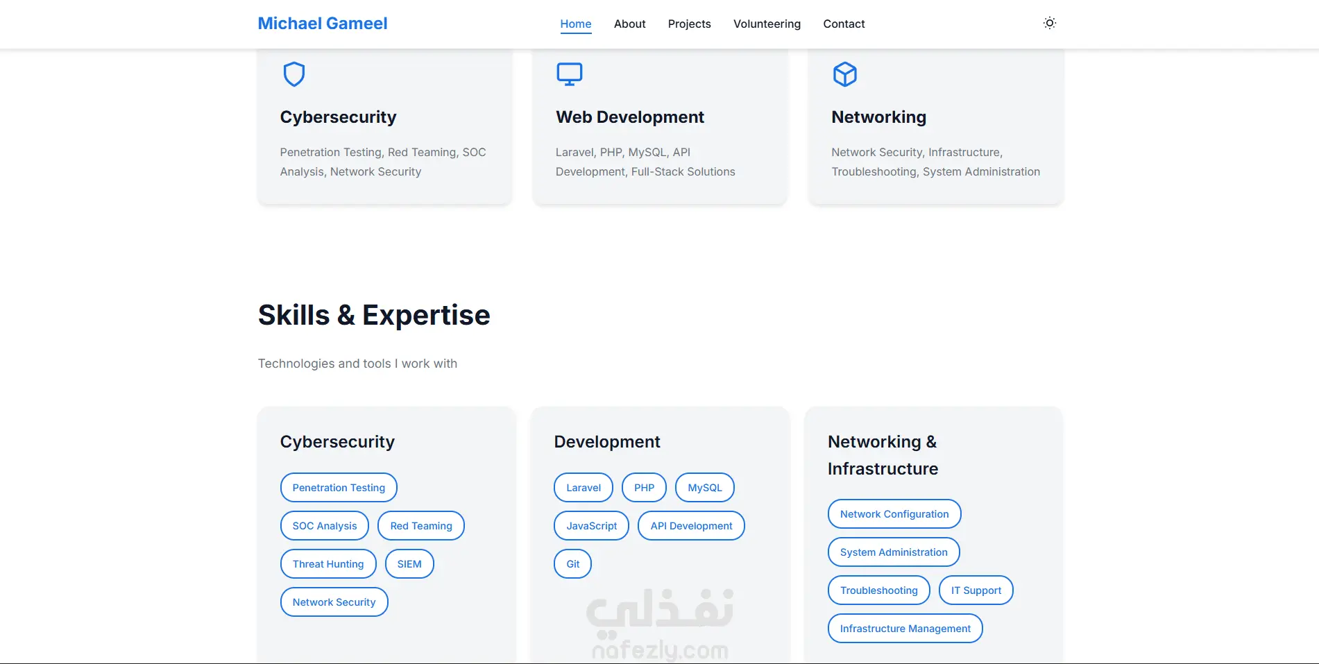 - أبرزت المهارات التقنية (Skills) والشهادات بشكل مرئي يسهل على الزائر استيعابه في ثوانٍ.