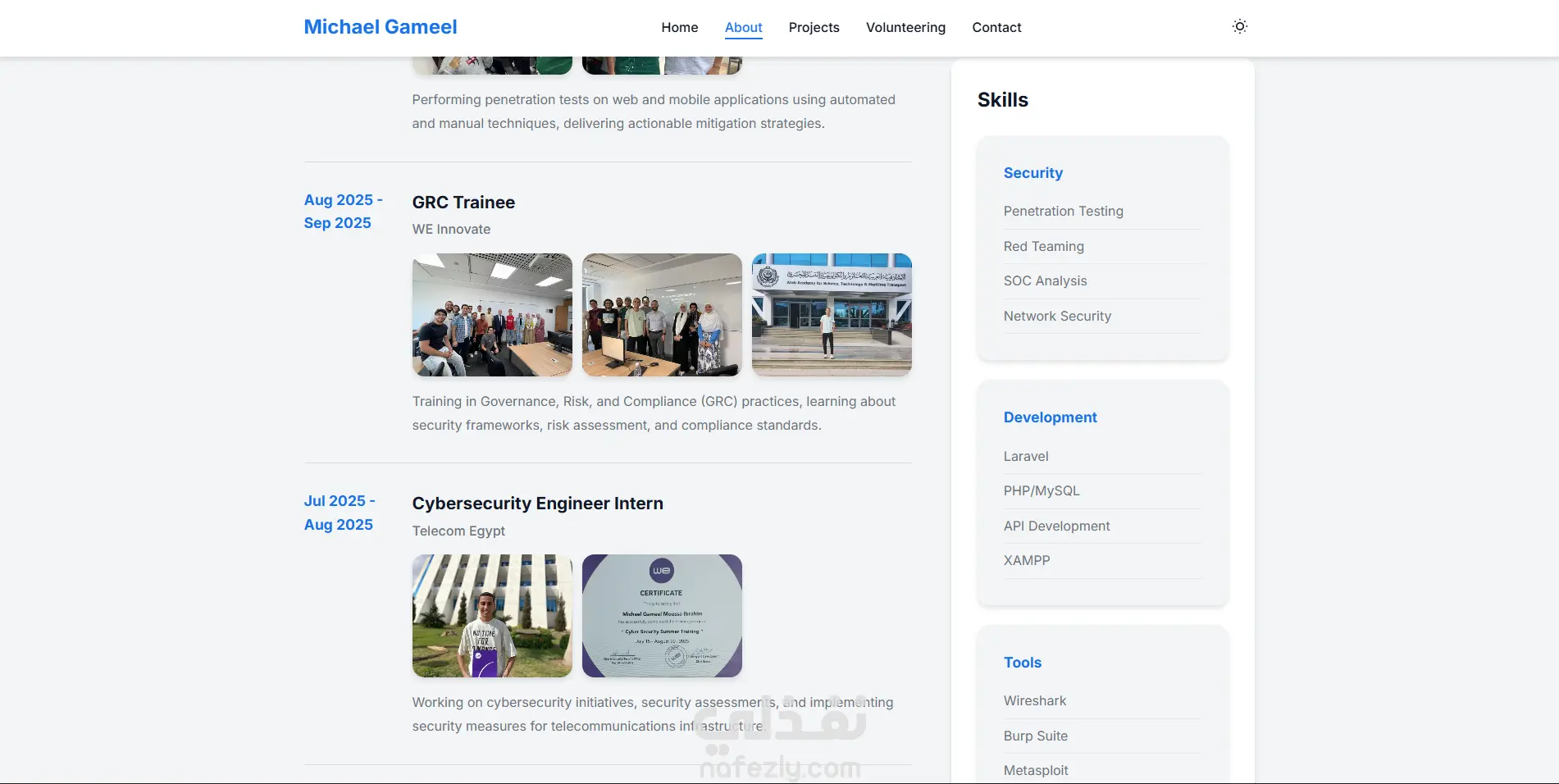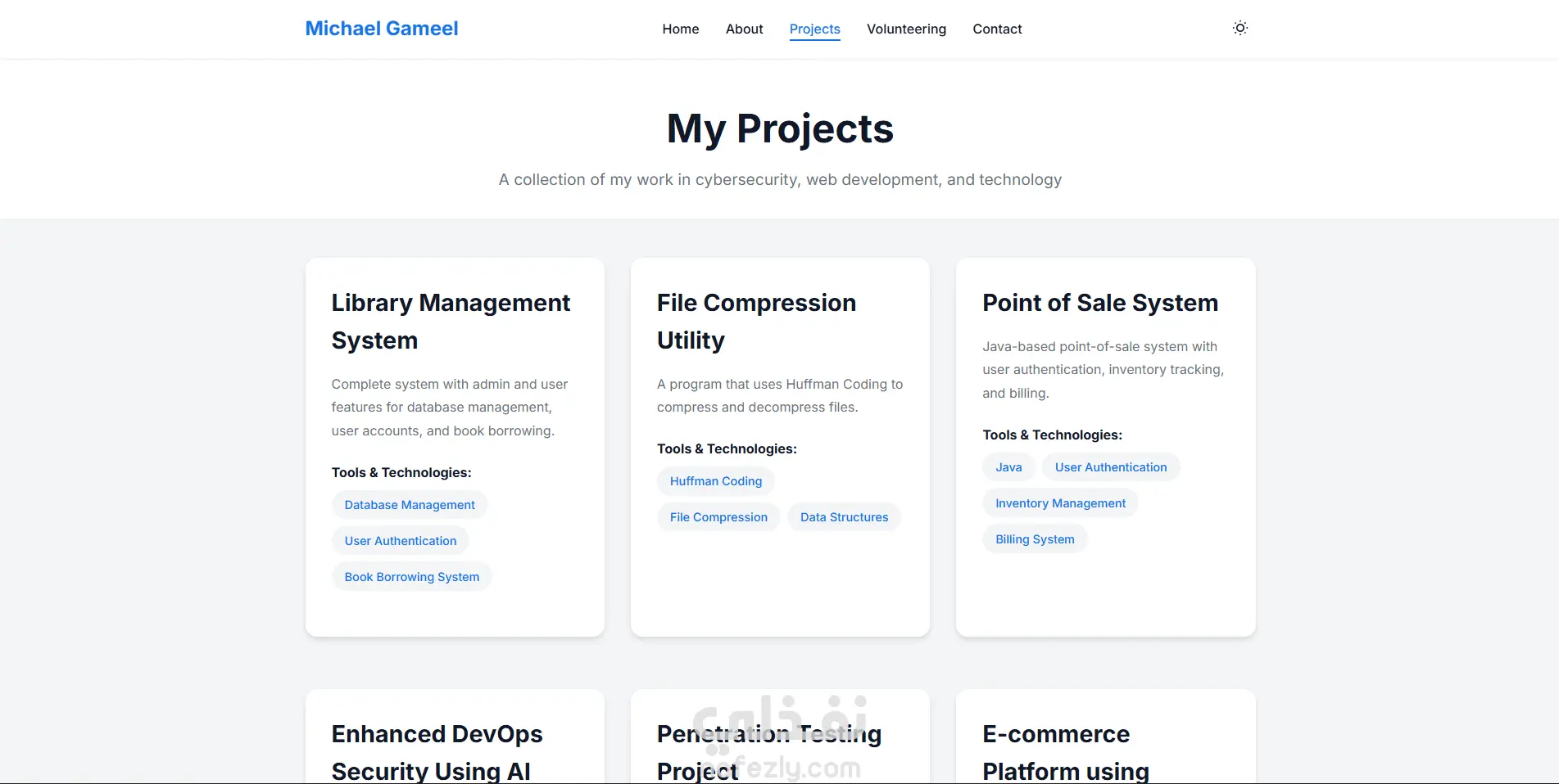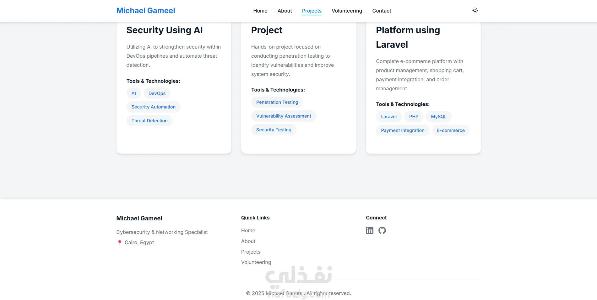 - قسم خاص للمشاريع البرمجية مع عرض الأدوات والتقنيات المستخدمة في كل مشروع.