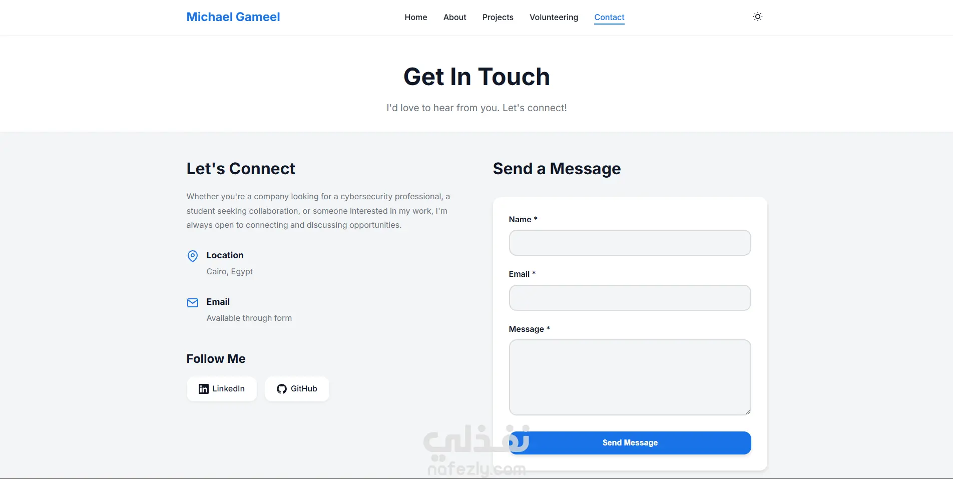 - أضفت نماذج اتصال احترافية (Contact Form) وروابط مباشرة لمنصات التواصل المهنية مثل LinkedIn و GitHub، لتسهيل وصول الفرص إليك.
