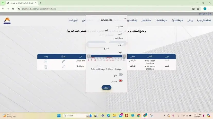 Collaborated with Ain Shams University to develop a web-based scheduling system. • Used PHP & MySQL (phpMyAdmin) for back-end development and JSON for data handling. • Designed a responsive, mobile-compatible interface using HTML, CSS and JavaScript. • Implemented dynamic Gantt chart for visualizing schedules. • Integrated TCPDF for generating PDF reports and PHPMailer for email notifications. • Deployed on Hostinger with domain and hosting management.