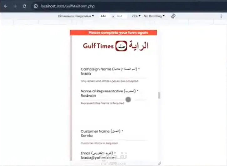 • Developed an advertising form system for Gulf Times (Qatar) as part of a team. • Used PHP for back-end development, ensuring compatibility with IIS Server. • Integrated PHPMailer for secure email submissions.