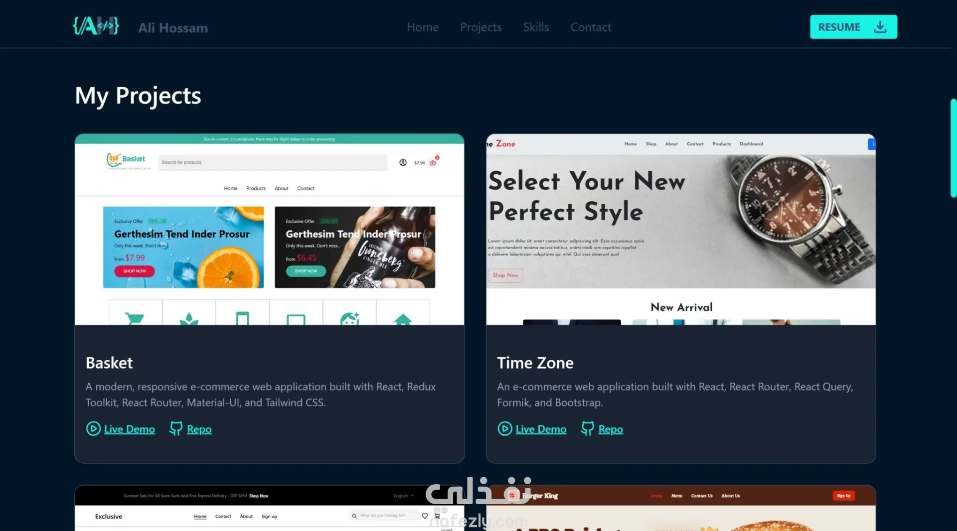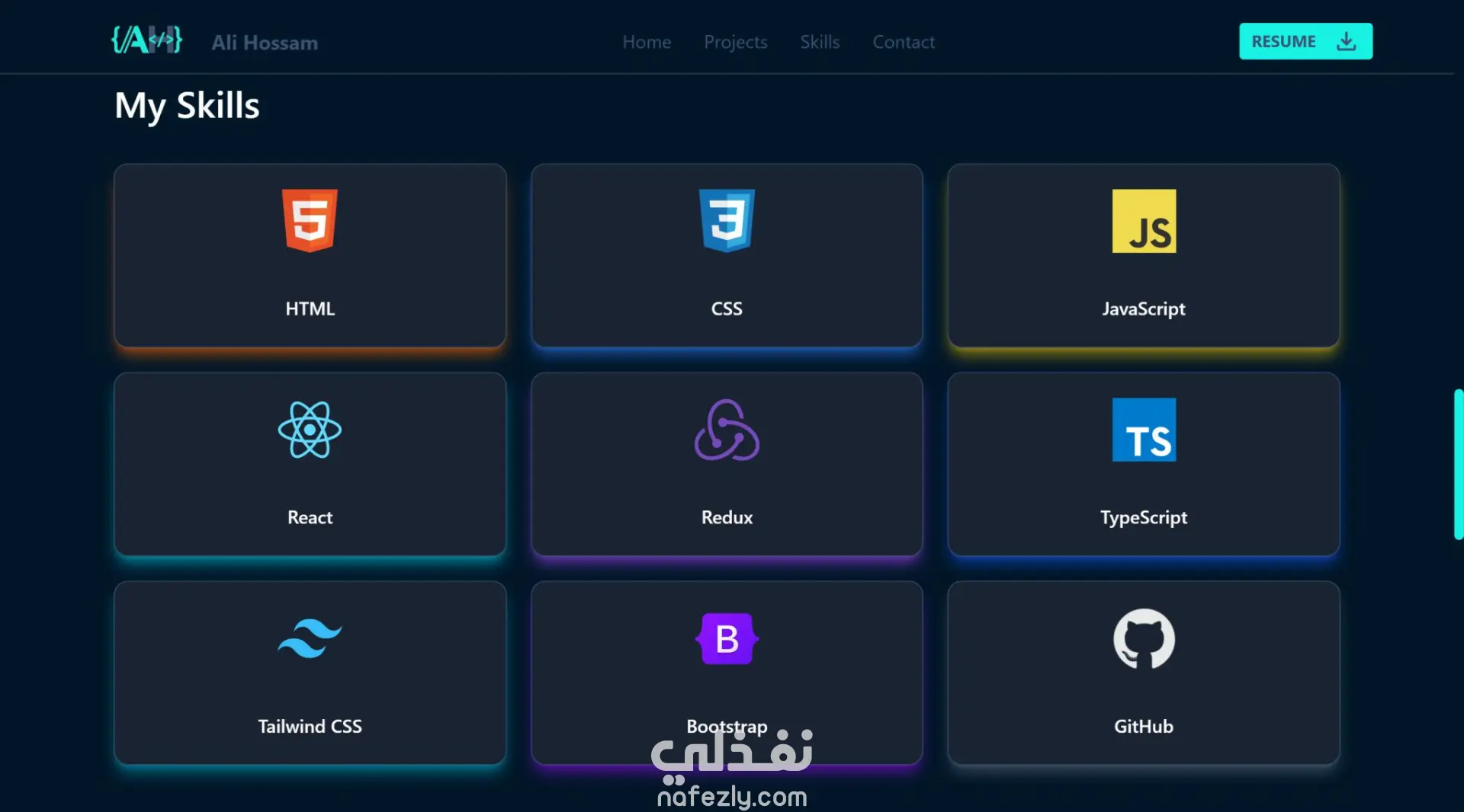 ر واجهة مستخدم لموقع بورتفوليو شخصي باستخدام React و TypeScript
