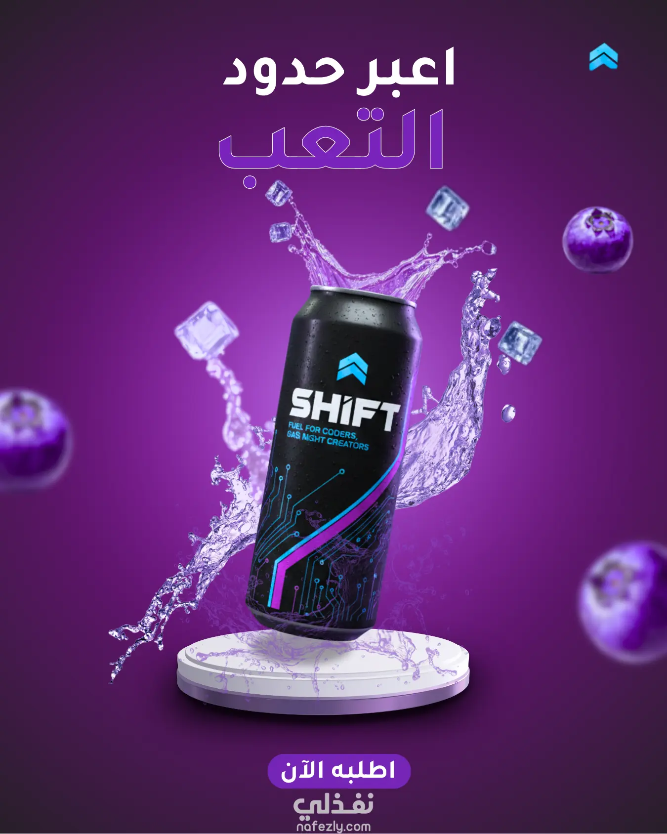 تصميم إعلاني لمشروب "SHIFT" – وقود المبرمجين وصنّاع المحتوى.