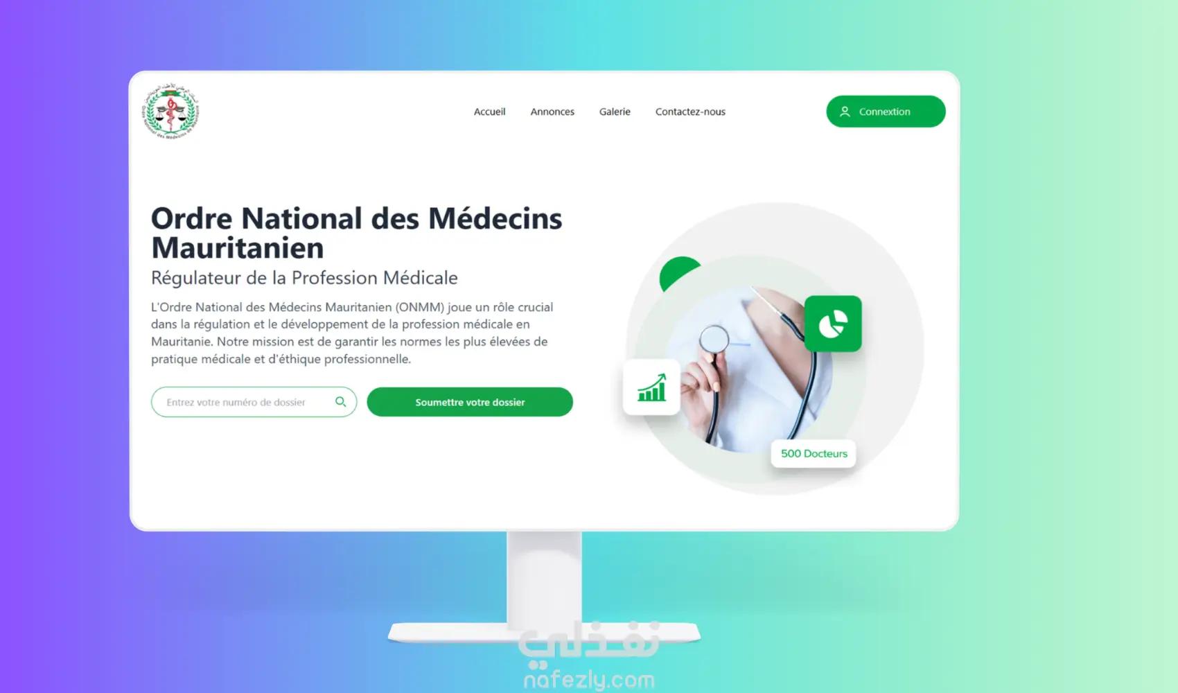 قمت بتصميم وتطوير منصة ويب متكاملة خاصة بهيئة Ordre des Médecins، تجمع بين موقع رسمي تعريفي ولوحة تحكم إدارية لإدارة طلبات الانضمام وبيانات الأطباء. يتضمن المشروع: موقع رسمي لعرض معلومات الهيئة، الأخبار، النصوص التنظيمية والوثائق. نظام انضمام إلكتروني يسمح للأطباء بتقديم الطلبات مع رفع المستندات وتتبع حالة الطلب. لوحة تحكم إدارية لإدارة الطلبات (قبول/رفض)، تحديث بيانات الأطباء، واستخراج التقارير. نظام بحث وتصفية للأطباء حسب التخصص، المنطقة والحالة. نظام مصادقة وصلاحيات لضمان أمان البيانات. تم تطوير المشروع باستخدام React.js وTailwind CSS للواجهة الأمامية، وStrapi كـ Headless CMS لإدارة المحتوى وبناء الـ API، مع تصميم احترافي مبني على Figma.