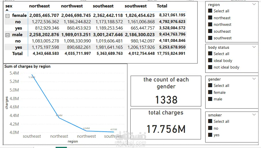 مشروع تحليل بيانات لشركة تامين صحي تم جلب البيانات من موقع kaggle بصيغة csv