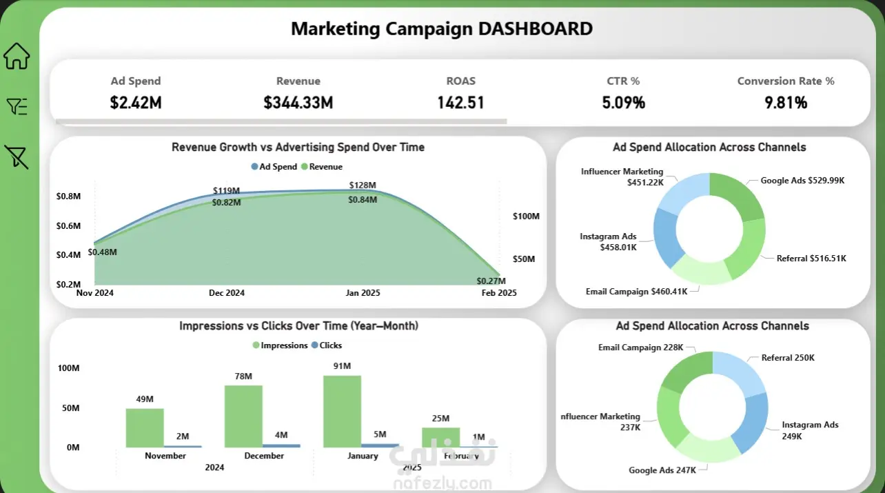 لوحة تحكم وتحليل أداء الحملات التسويقية الرقمية (Marketing Campaign Performance Dashboard)