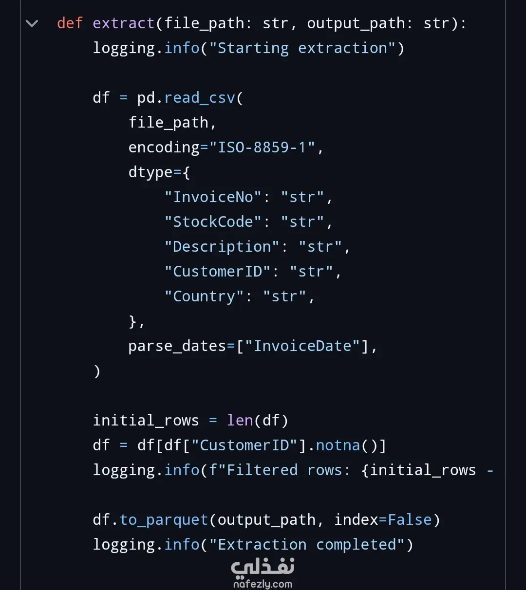 استخراج البيانات من ملفات csv وتنظيفها باستخدام pandas وجعلها جاهزة للاستخدام في التحليل واتخاذ القرارات وتحميلها في قاعدة البيانات لسهولة الرجوع إليها واستخدامها. العملية بالكامل automated باستخدام Apache Airflow