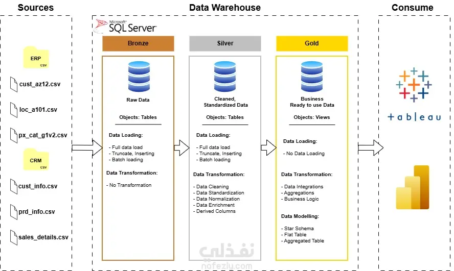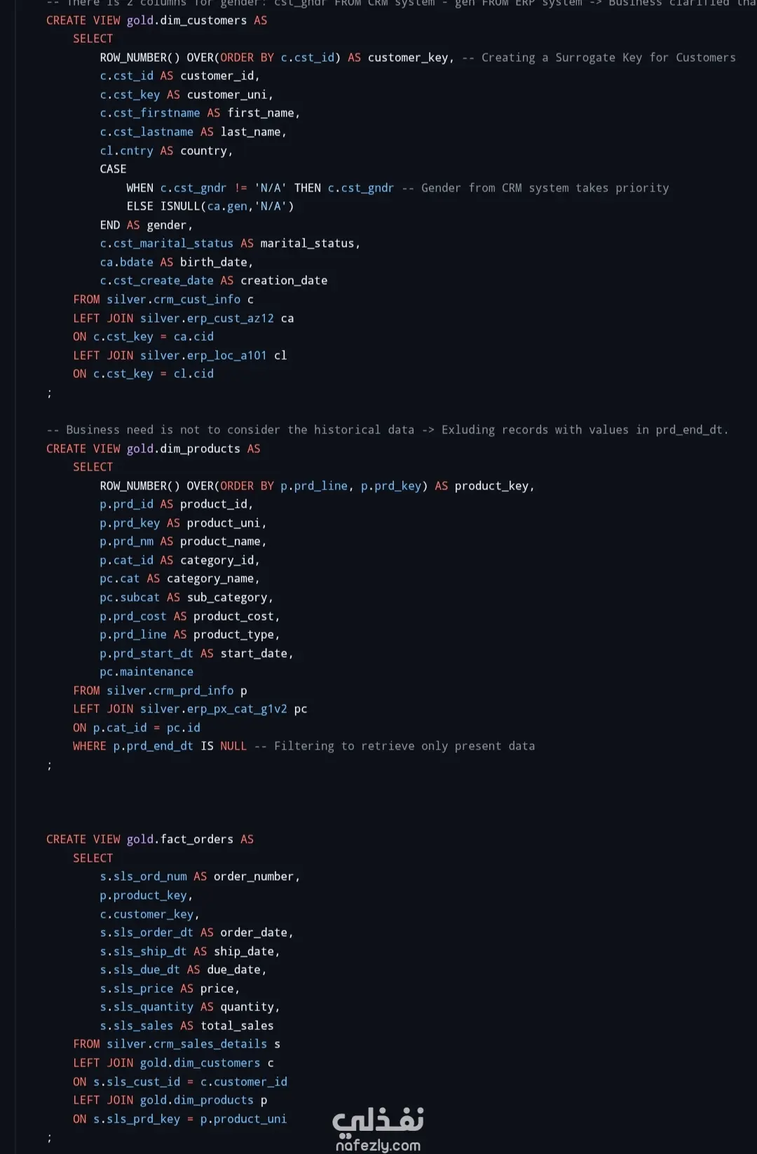 بناء Data Warehouse خاصة بشركة Sales لتخزين جميع البيانات الخاصة. تم بناء الجداول باستخدام Star schema data modelling
