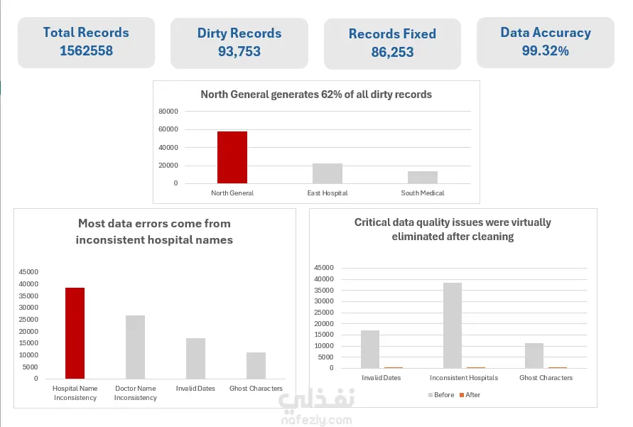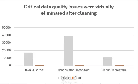 قمت بتنفيذ مشروع احترافي لتنظيف ومعالجة بيانات المستشفيات (ADT Logs) التي كانت تعاني من أخطاء هيكلية تؤثر على دقة التقارير الإدارية. شمل العمل: توحيد أسماء المستشفيات والأطباء المكتوبة بصيغ غير متناسقة اكتشاف وإزالة رموز خفية (Ghost Characters) كانت تكسر المعادلات والتقارير مراجعة منطق البيانات واكتشاف السجلات غير المنطقية (تاريخ خروج قبل الدخول) بناء نموذج بيانات نظيف وموثوق جاهز للتحليل الهدف من المشروع كان بناء أساس بيانات قوي يمكن الاعتماد عليه في القرارات التشغيلية والطبية. هذا المشروع تم تنفيذه على بيانات تدريبية تحاكي بيئة العمل الحقيقية.
