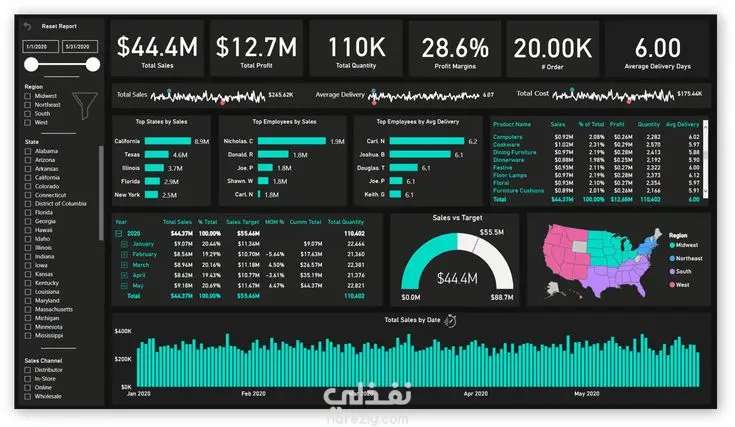 داش بورد تحتوي علي تحليل لمتجر من حيث عدد الاوردرات و صافي الربح و إجمالي المبيعات