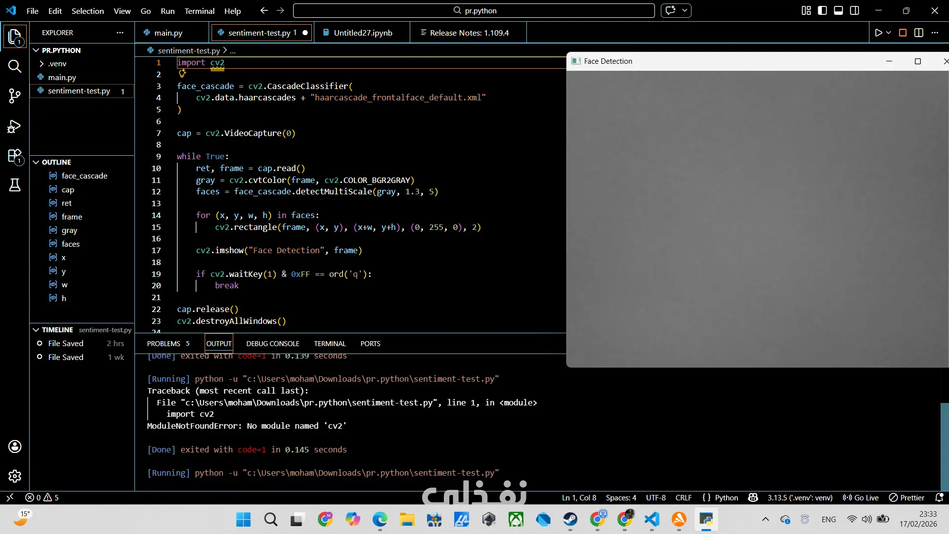 Real-time face detection system using computer vision and OpenCV.