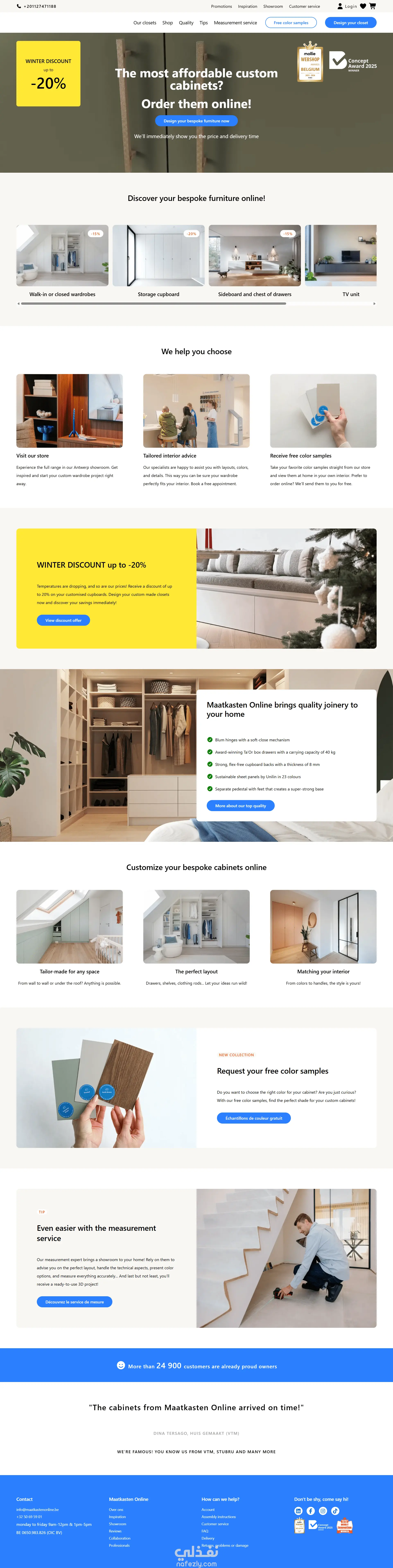 متجر إلكتروني متخصص في الأثاث المخصص، مستوحى من البراند البلجيكي الشهير Maatkasten Online. يركز المشروع على تقديم تجربة مستخدم سلسة، عصرية، وسريعة الاستجابة، مع محاكاة دقيقة لأدق تفاصيل التصميم.