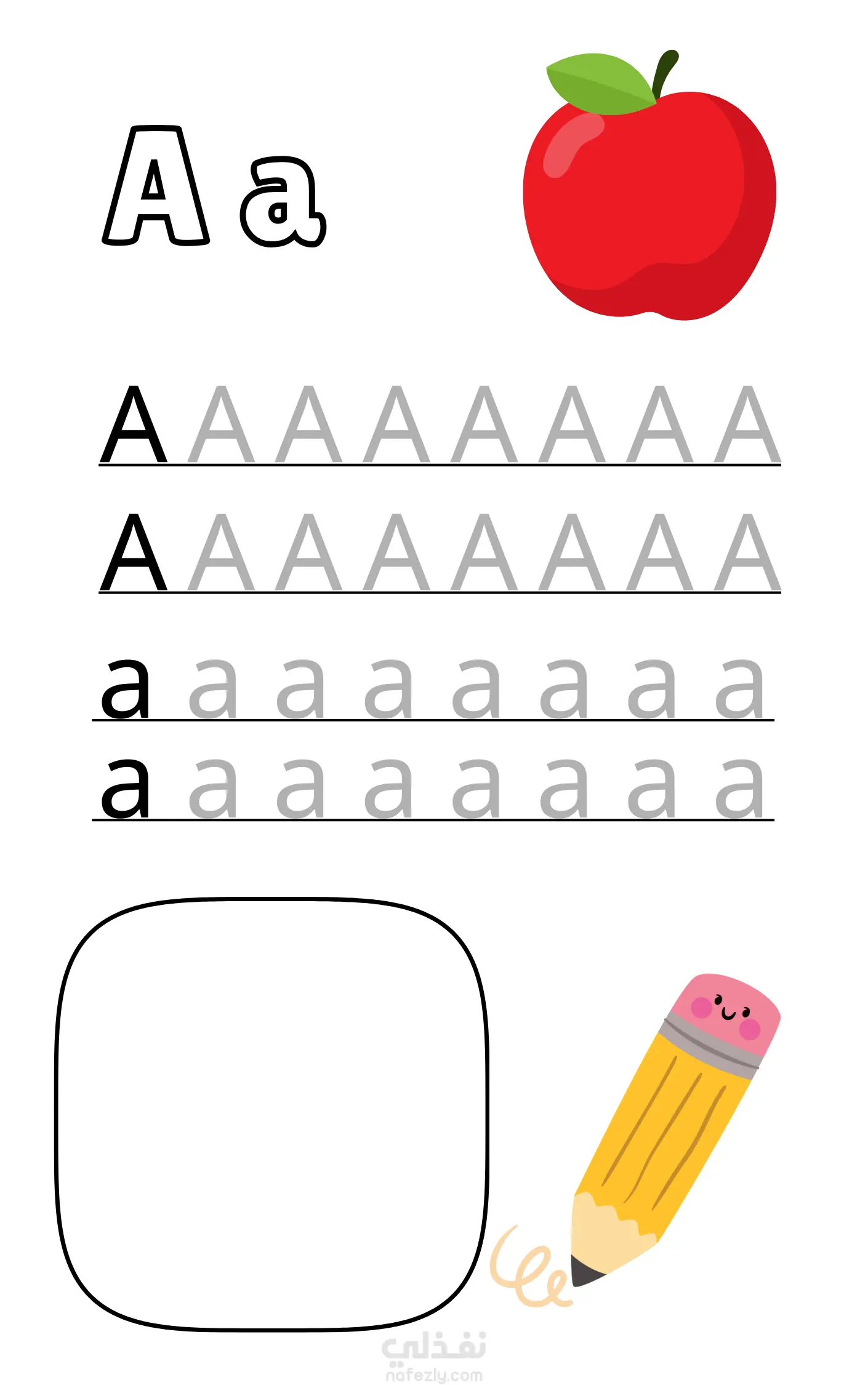 كتاب تلوين وتعليم الحروف الإنجليزية للأطفال مصمم لمساعدة الأطفال في مرحلة ما قبل المدرسة والسنوات الأولى على تعلم الحروف (A-Z) بطريقة ممتعة وسهلة. يجمع بين التلوين وتتبع الحروف والأنشطة التفاعلية لتعزيز مهارات الكتابة والتركيز والتعرف على الحروف، في ملف PDF جاهز للطباعة بجودة عالية.