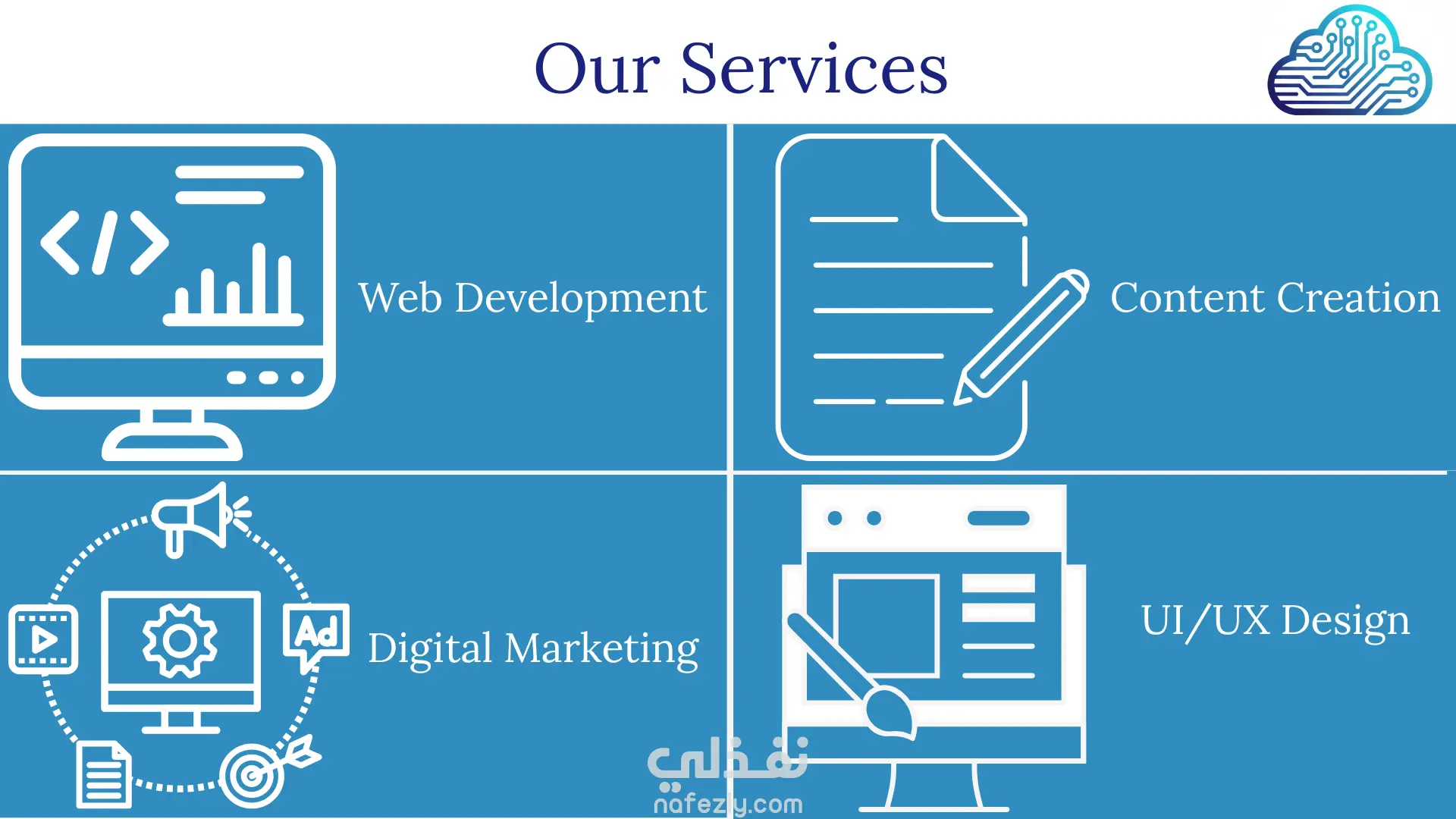 تصميم الشعار (Logo Design): دمج مفهوم السحاب (المرونة والذكاء الاصطناعي) مع خطوط هندسية توحي بالدقة التقنية.
