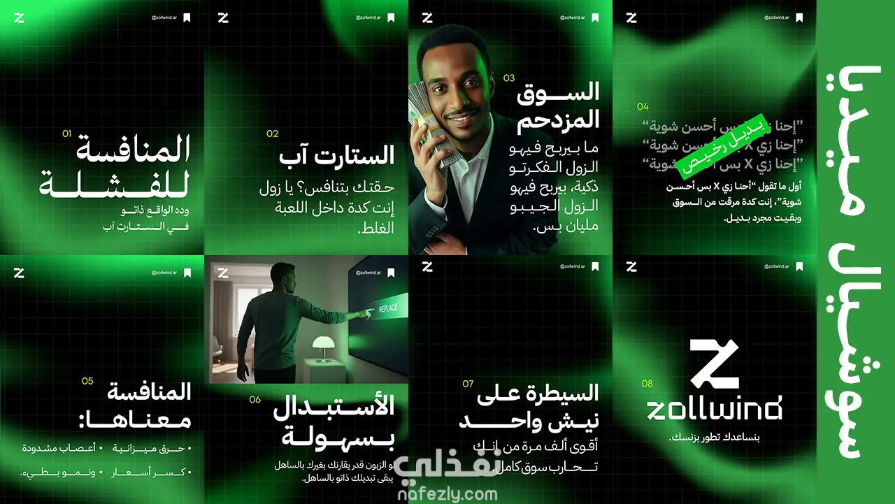 يتضمن المشروع تصميم منشورات كاروسيل احترافية لمنصات التواصل الاجتماعي (مثل إنستجرام وفيسبوك)، بهدف عرض المحتوى بشكل جذاب ومتسلسل يساعد على زيادة التفاعل وتوصيل الفكرة بوضوح.