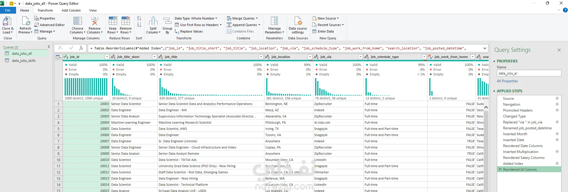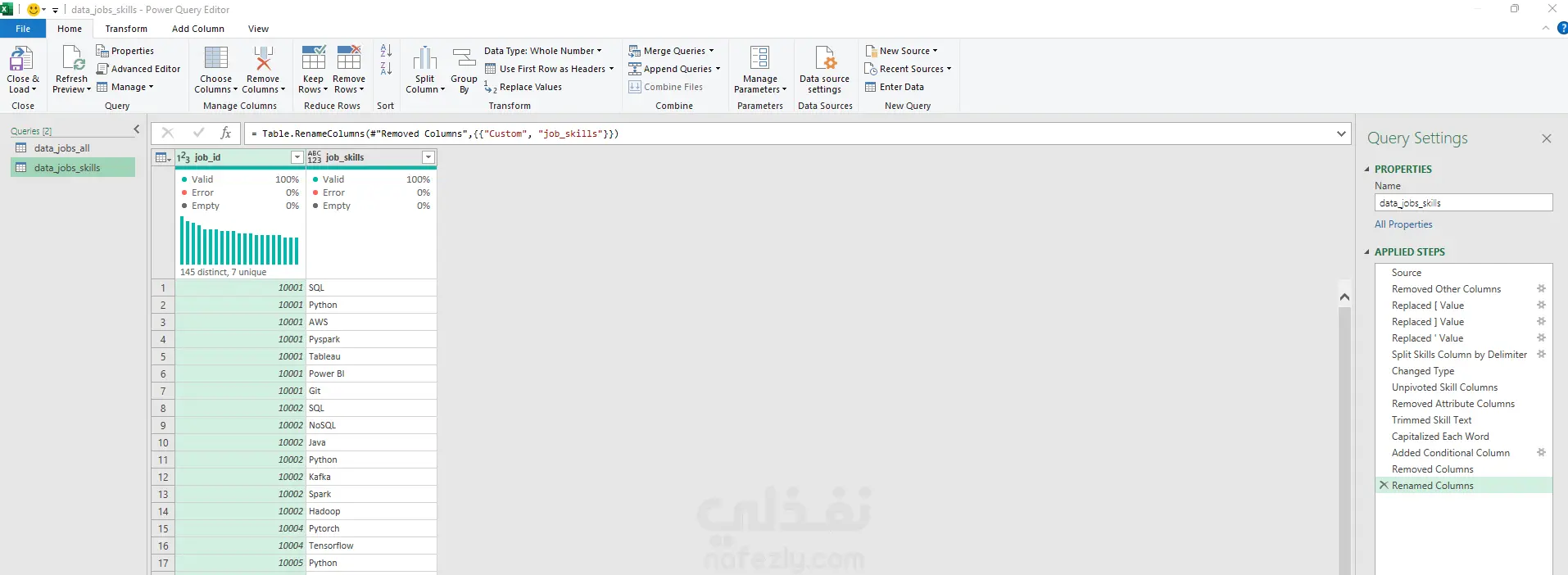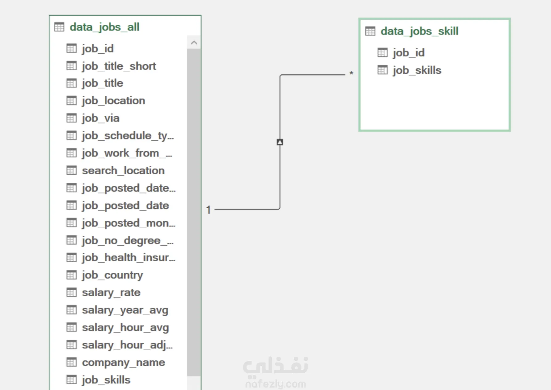 Power Pivot (Data Modeling): بناء نموذج بيانات يربط بين جداول الوظائف والمهارات عبر علاقات (Relationships) لضمان دقة النتائج.