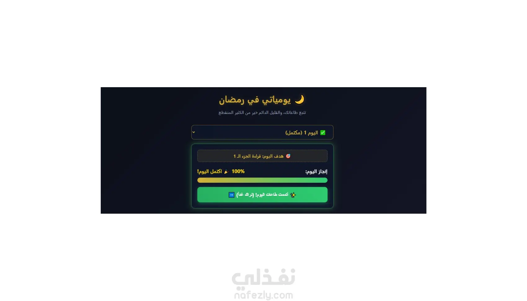 أقدم لك خدمة تصميم وبرمجة تطبيق ويب تفاعلي (متتبع عادات رمضانية - Ramadan Tracker) متكامل واحترافي. هذا التطبيق ليس مجرد قائمة مهام عادية، بل هو أداة ذكية وتفاعلية تساعد المستخدمين على متابعة صلواتهم، أذكارهم، وورد القرآن اليومي بطريقة محفزة وممتعة. التطبيق مبني بالكامل باستخدام تقنيات الويب (HTML, CSS, Vanilla JavaScript) مما يجعله خفيفاً وسريعاً جداً، وهو مثالي لأصحاب المواقع، صناع المحتوى، أو المؤسسات التي ترغب في إهداء متابعيها أداة رمضانية مفيدة وجاهزة للعمل