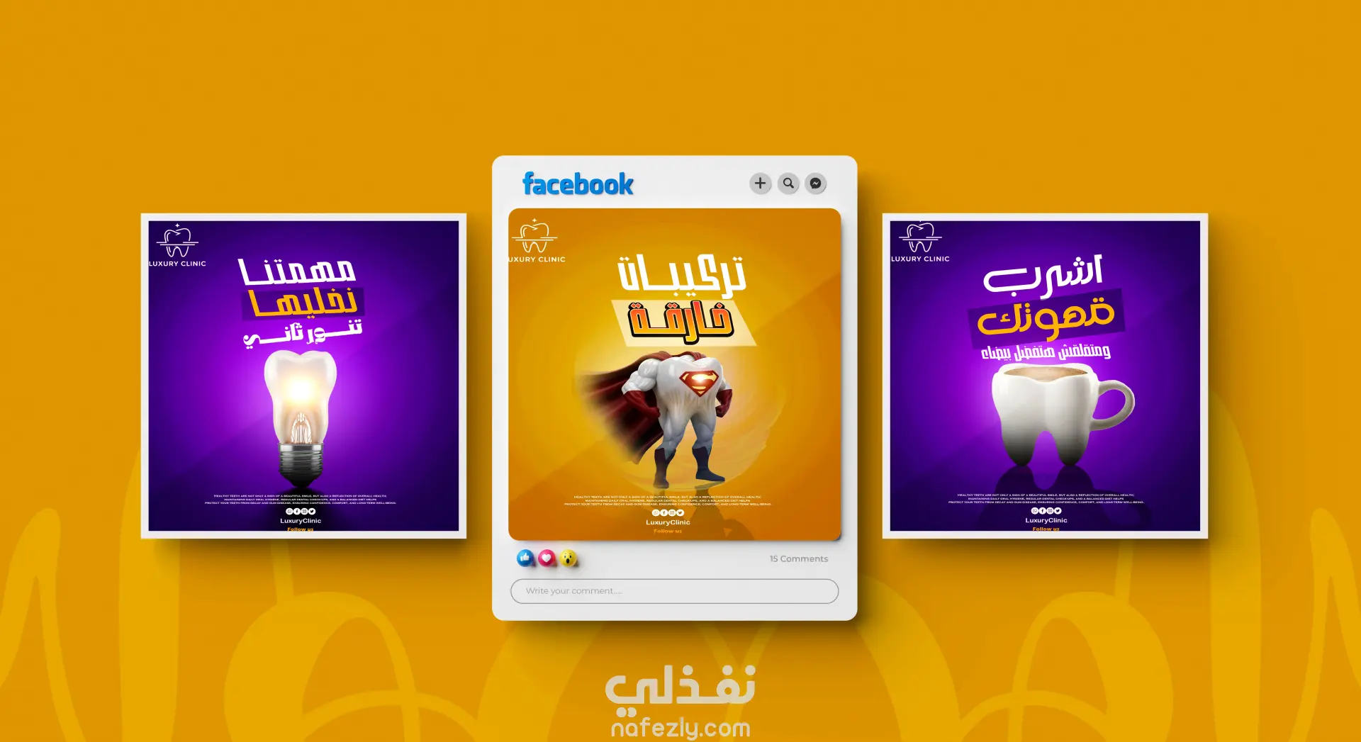 هل تبحث عن تصاميم تخرج عن المألوف وتجذب العين من الوهلة الأولى؟ أنا هنا لأحول أفكارك إلى واقع بصري مذهل. ما الذي أقدمه في هذه الخدمة؟ تصاميم إبداعية (Creative Manipulation): مثل دمج العناصر (فكرة الضوء في الأسنان أو السوبر هيرو) لجعل إعلانك فريداً. هوية بصرية متكاملة: تنسيق الألوان والخطوط بما يتناسب مع علامتك التجارية (كما في تصاميم Tiger وLuxury Clinic). تصاميم مخصصة لكل المنصات: (فيسبوك، إنستجرام، تيك توك) بمقاسات دقيقة وجودة عالية. سرعة في التنفيذ: مع مراعاة أدق التفاصيل في الإضاءة والظلال لإعطاء واقعية للتصميم.