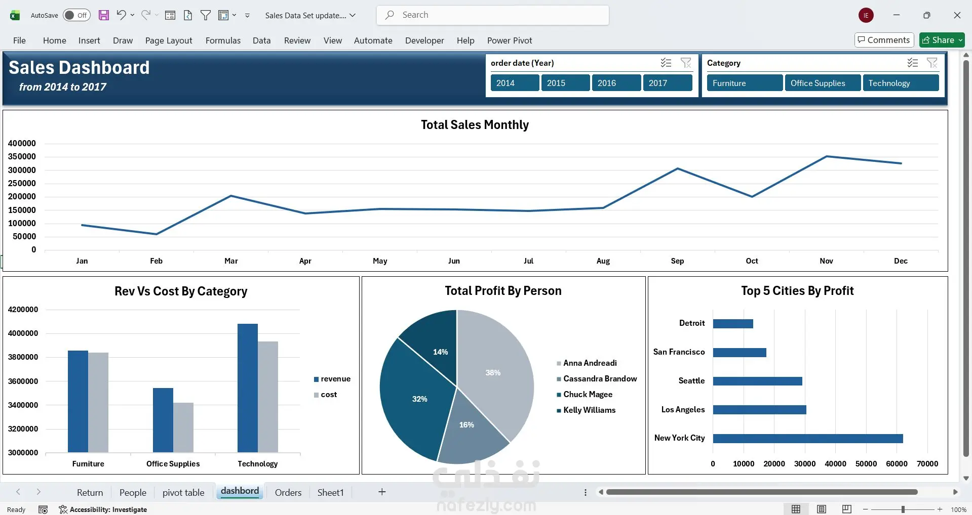 5- اعتمدت علي ال Pivot tables و Pivot charts لتحليل البيانات وتحويلها الي مؤشرات واضحة