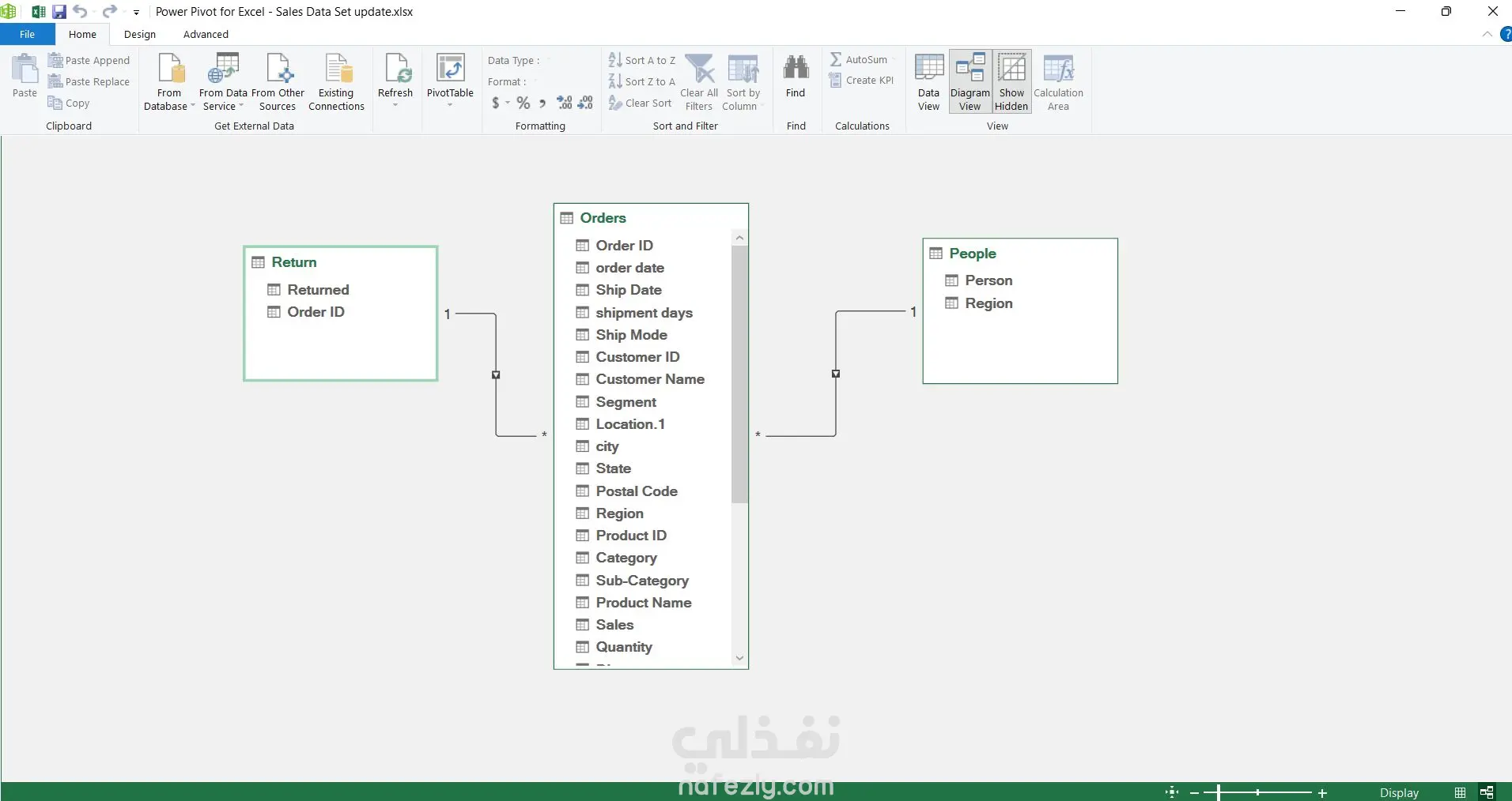 3- استخدمت ال power pivot في عمل Modeling لربط الداتا ببعضها