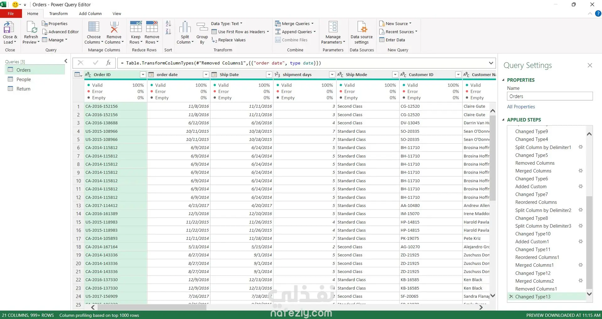 2- عملت Data cleaning للداتا بتاعتي وتكملة الداتا المفقودة باستخدام power query