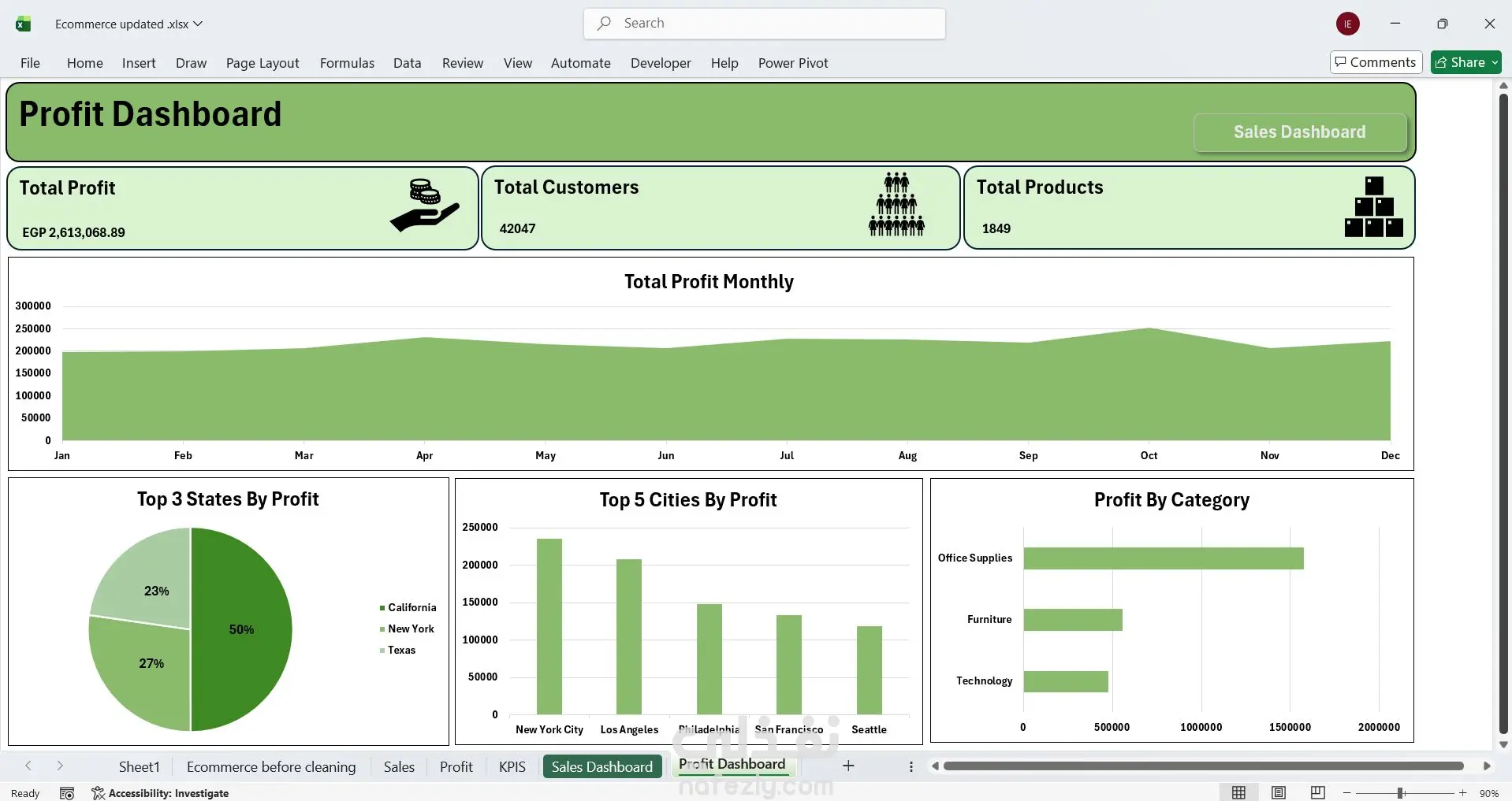٧- إنشاء لوحات تحكم للمبيعات والأرباح.