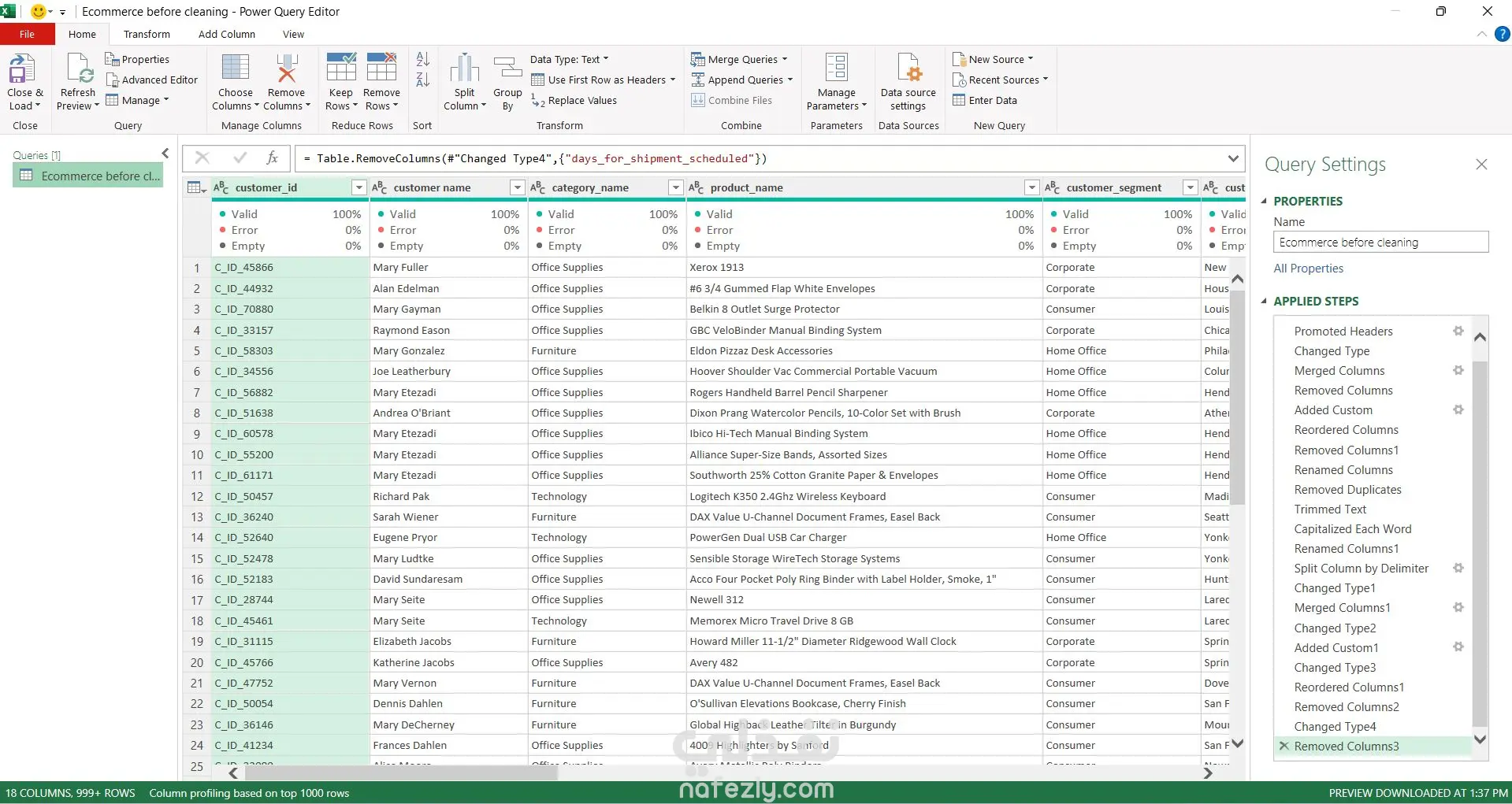 ٢- التحقق من جودة البيانات لجميع الأعمدة وإزالة البيانات المكررة.