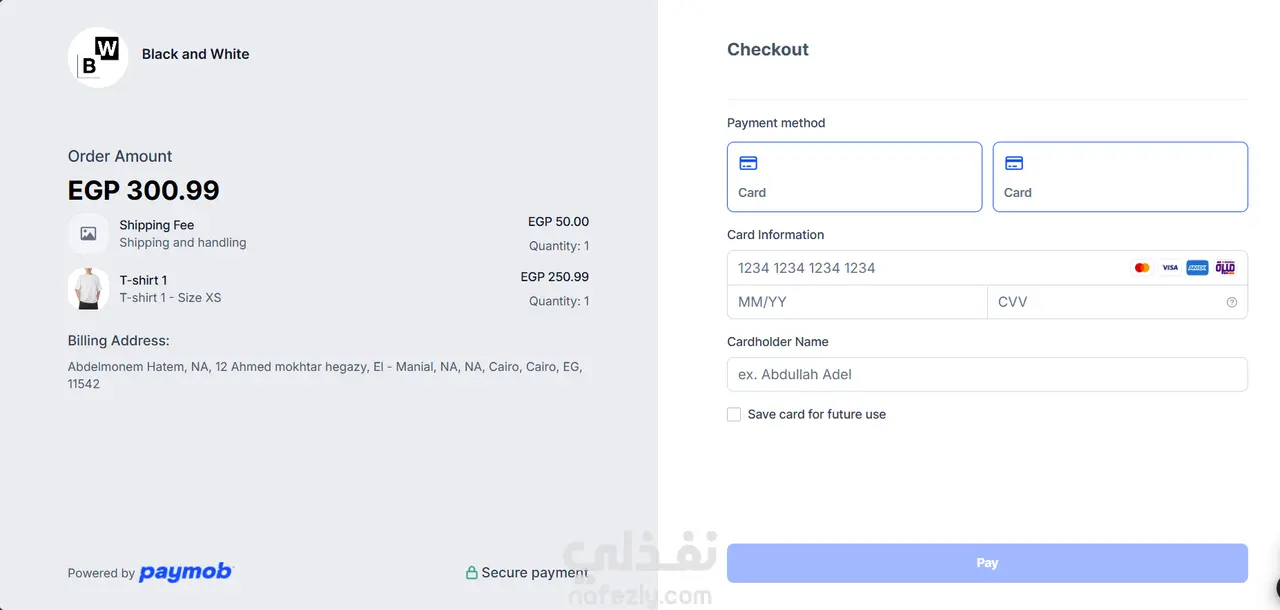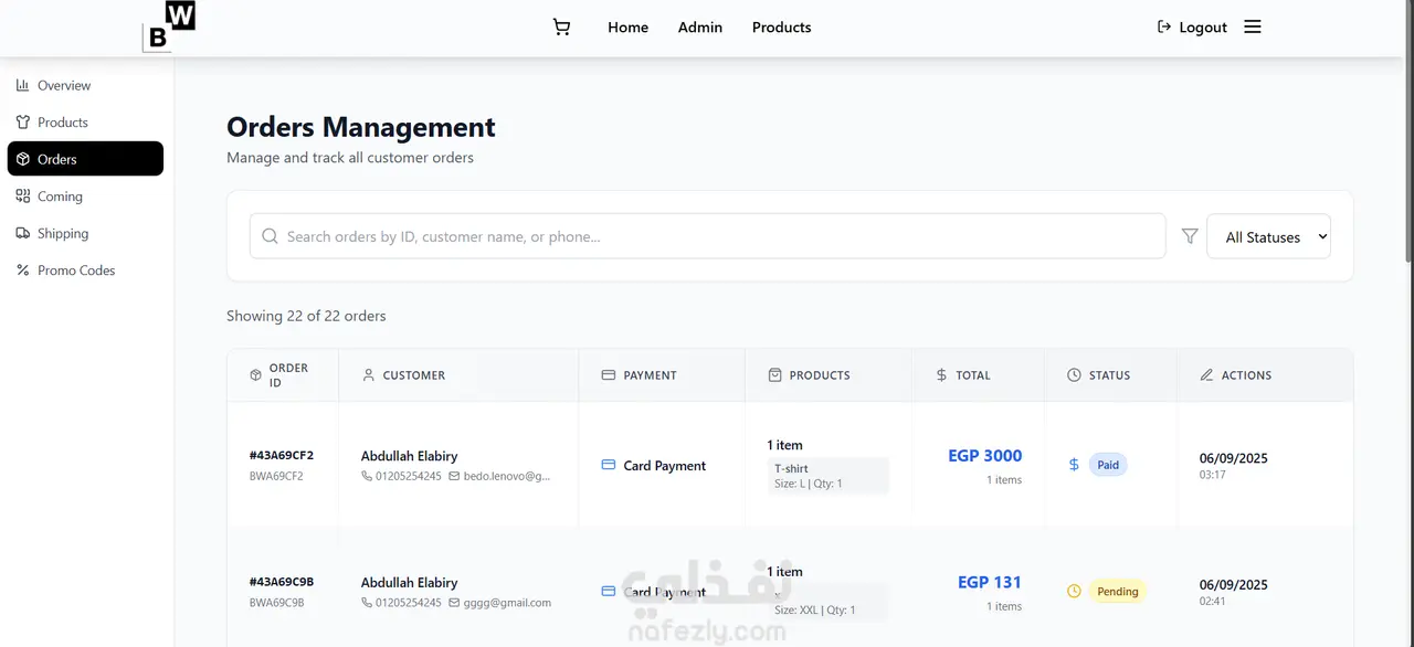قمت ببناء متجر إلكتروني متكامل (Full-stack MERN) لمتجر B&W (بلاك آند وايت). قمت بدمج بوابة الدفع Paymob لضمان عملية دفع آمنة وسلسة. الواجهة الأمامية: React 18, TypeScript, Zustand, Tailwind. الواجهة الخلفية: Node.js, Express, MongoDB مع JWT, CSRF, bcrypt, rate limiting. الميزات: تصميم متجاوب إتمام الشراء للزوار (بدون تسجيل) تنبيهات عبر البريد الإلكتروني، تعدد اللغات. لوحة تحكم (Dashboard) إدارية متقدمة لإدارة المنتجات والطلبات والتحليلات والعروض الترويجية.