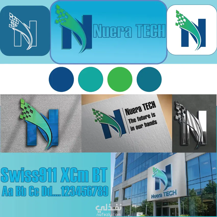 في هذا العمل تم استعمال حرف ال N و التعديل عليه مع مراعاة استخدام الألوان المناسبة تم استعمال اللون الأزرق و الأخضر و الزمردي