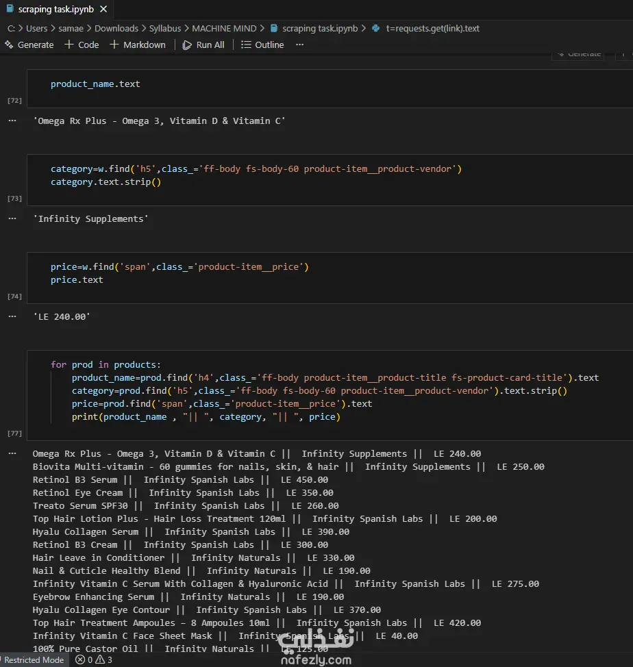 Built a web scraping project to extract product data from the Infinity website using Python and BeautifulSoup. Automated the extraction of structured product information and exported it to CSV for analysis.
